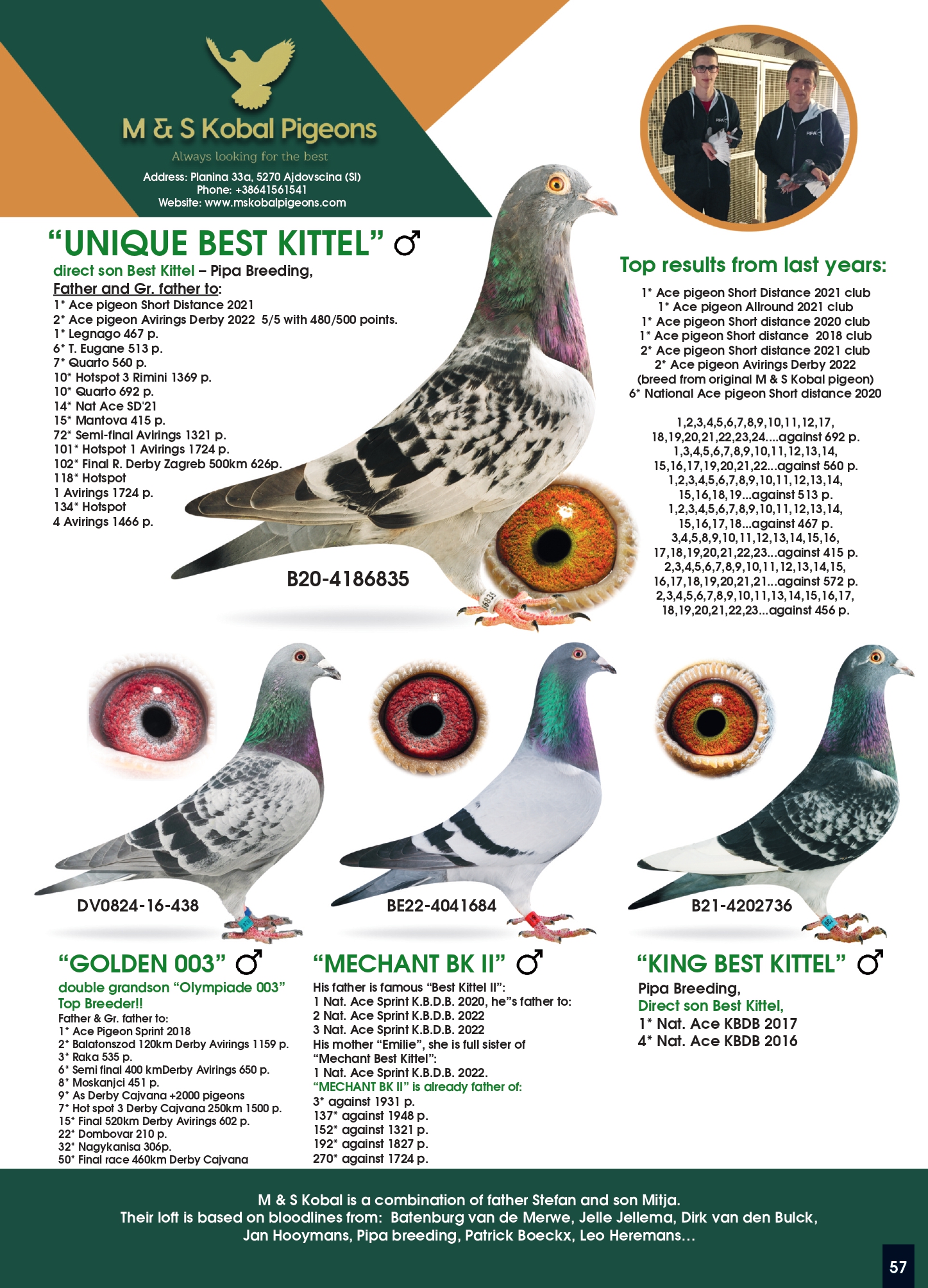 M & S Kobal este o combinaÈ›ie între tatăl Stefan (născut în 1967) È™i fiul Mitja (născut în 1995). Ștefan era el însuÈ™i columbofil deja în 1986, dar, din păcate, după câÈ›iva ani a trebuit să-È™i încheie cariera de columbofil din cauza timpului insuficient pentru a avea grijă de porumbei. În 2013 am intrat din nou în sportul colum [...]