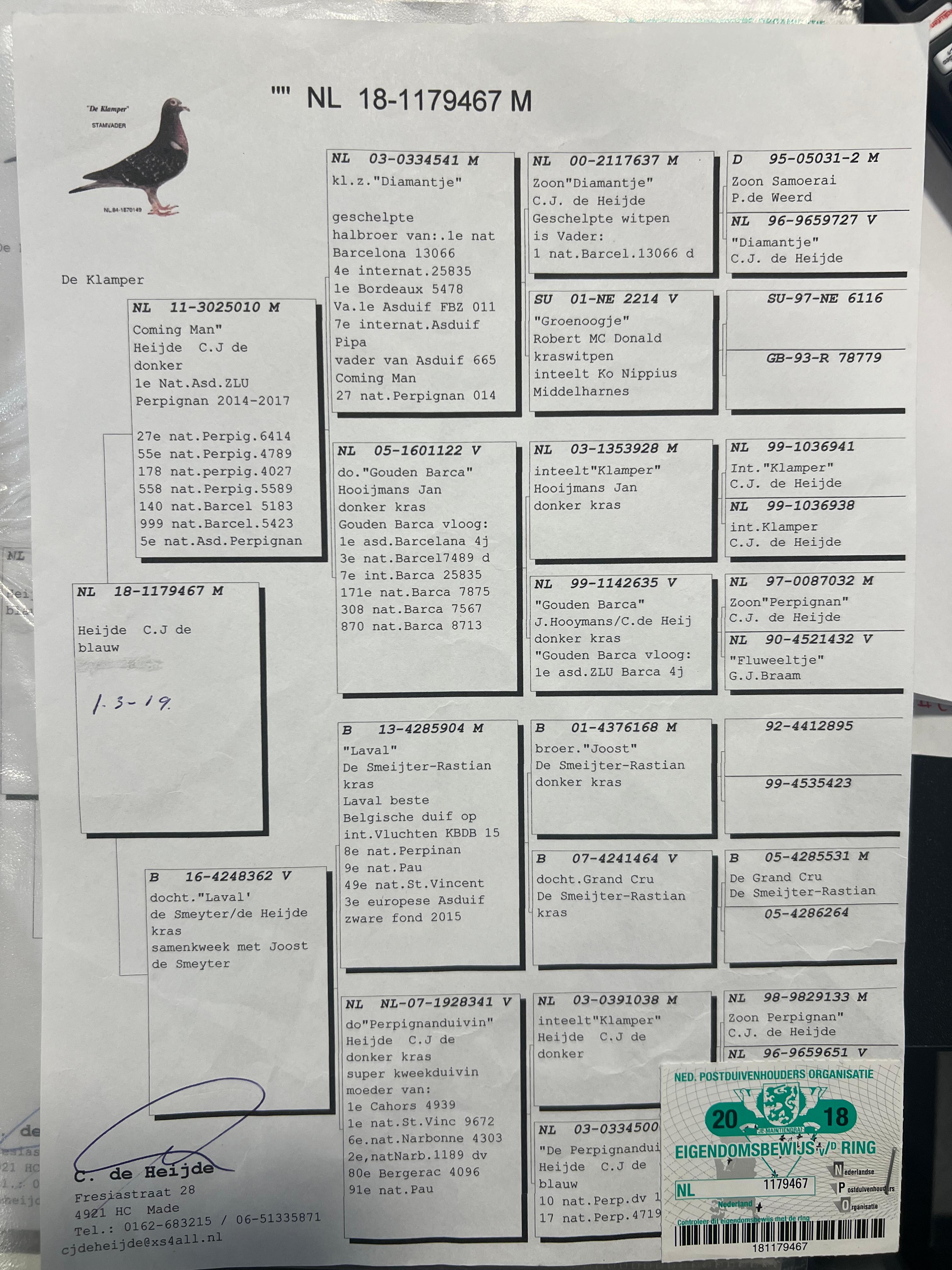 Nepot "BARCELONA KING" 1 Nat.Interpares 07-11 5 Int.Interpares 07-11 1 Nat.Barcelona 09-17 16 Nat.Barcelona 2002 p 90 Nat Barcelona 2368 p 120 Nat Barcelona 1959 p 162 Nat Barcelona 1921 p 212 Nat Barcelona 2447 p Nepot "4 Ace Yarling"2016 "5 Nat.Ace Pigeon" 2024 ....... nevandut |