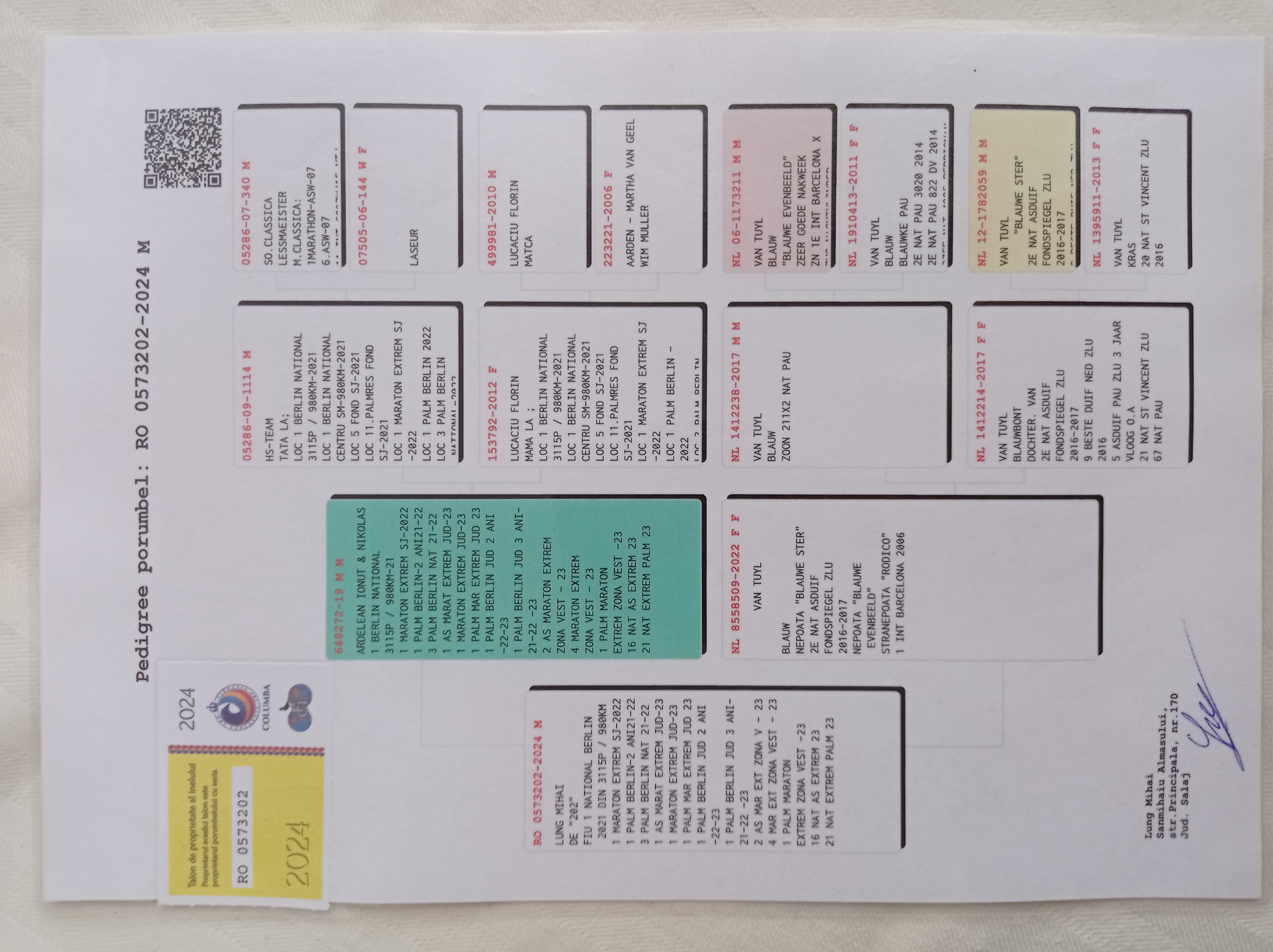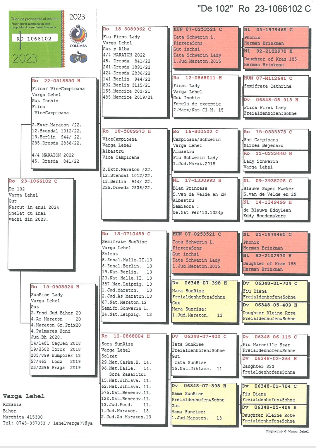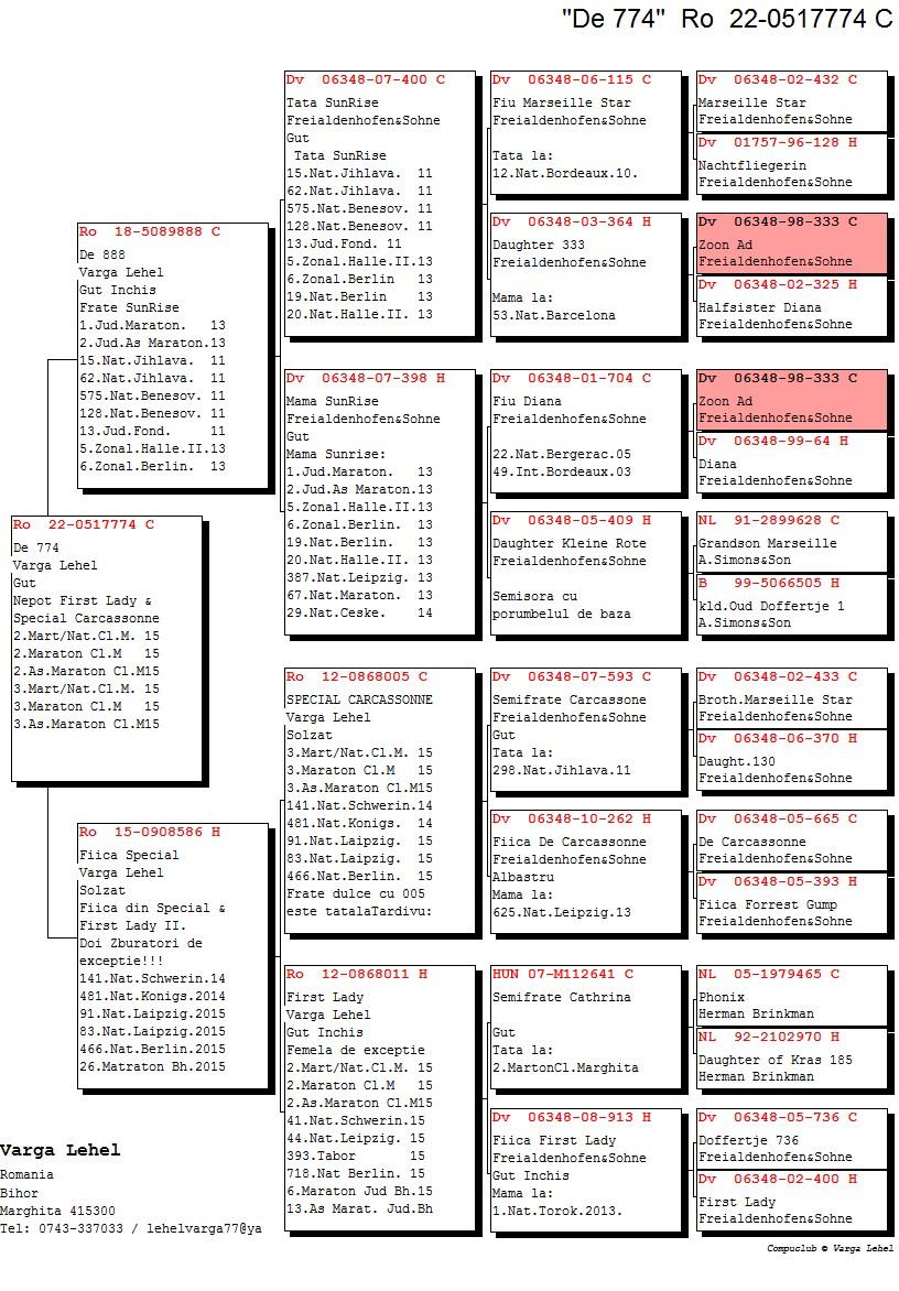 Dublu stranepoata Frenkie 3 Nat. Maraton Internat. races `19 13 Nat. Agen 5214 p. `19 27 Int. Agen 12111 p. 20 Nat. Perpignan `19 71 Int. Perpignan `19 Dublu stranepoata Red Rose 3 Europa Maraton 16 12 Nat Pau 3788 p 14 Int Pau 9908 p 19 Nat Perpig 4027 p 52 Int Perpig 12689p 32 Nat Perpig 6414p Dublu stranepoata Kopie Toon = super reproducator nevandut |