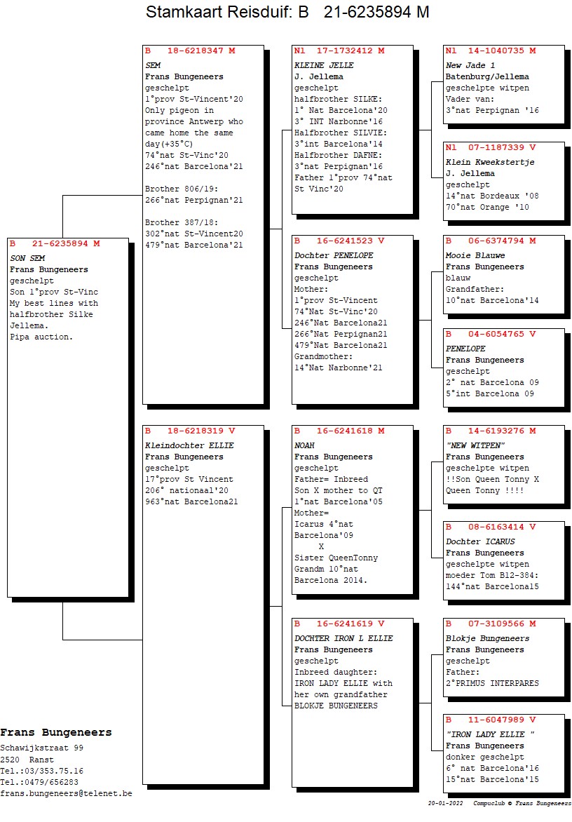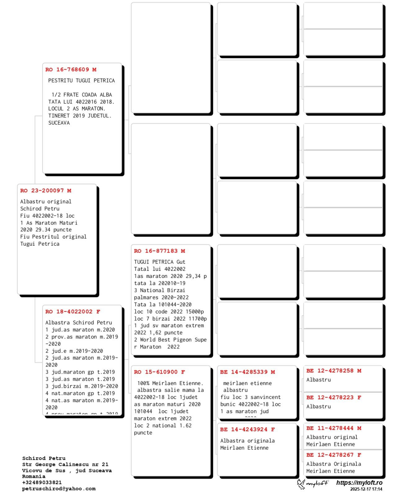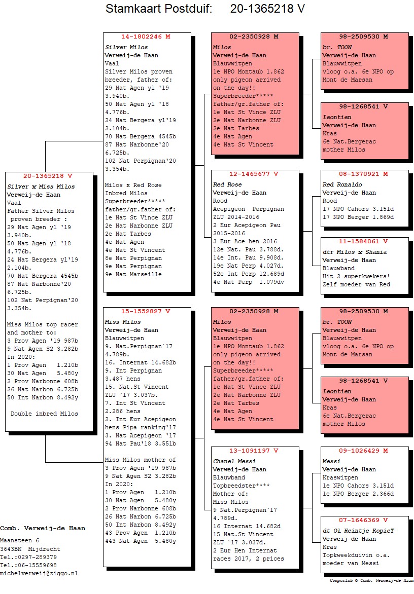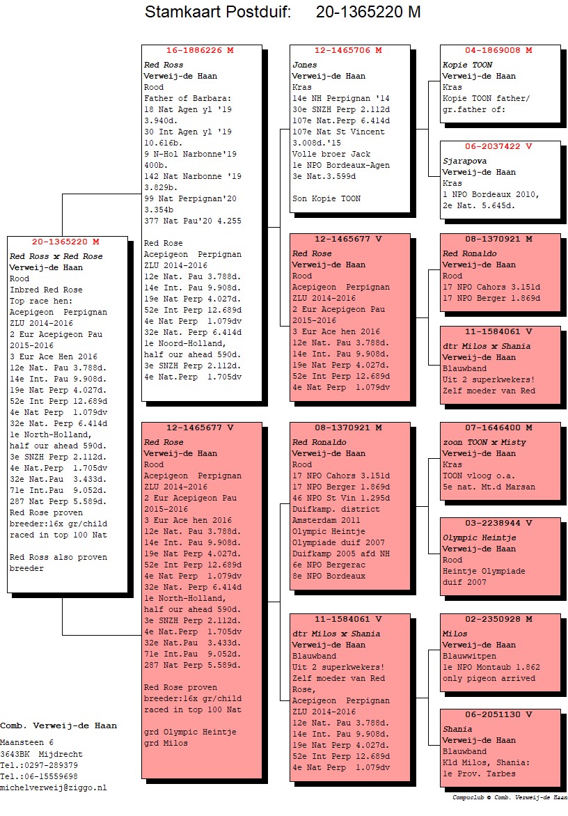 Dublu stranepoata Frenkie 3 Nat. Maraton Internat. races `19 13 Nat. Agen 5214 p. `19 27 Int. Agen 12111 p. 20 Nat. Perpignan `19 71 Int. Perpignan `19 Dublu stranepoata Red Rose 3 Europa Maraton 16 12 Nat Pau 3788 p 14 Int Pau 9908 p 19 Nat Perpig 4027 p 52 Int Perpig 12689p 32 Nat Perpig 6414p Dublu stranepoata Kopie Toon = super reproducator nevandut |