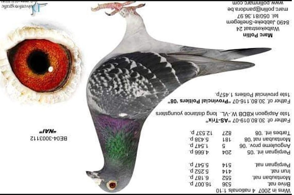 Nepoata Victory Best Kittel 1 Ace Victoria Falls Nepoata Angouleme Vooruit 1 Nat. Angouleme cu 17 min avans fata de Armando ( Noel Verschoot). Porumbel concurat la Avi Rings OLR - Slovenia , finala 520 km si extra race 607 km nevandut |