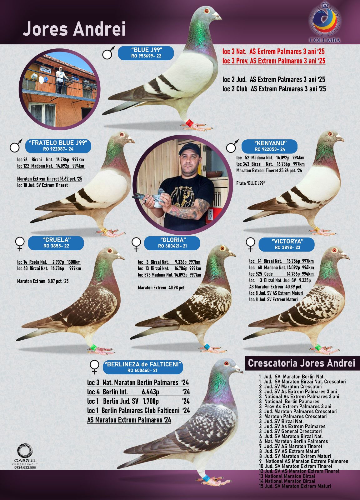Valoarea incontestabila a porumbeilor i-au adus rezultate cu adevarat notabile in anul 2025 cand a cucerit mai multe trofee la nivel judetean la categoriile Maraton si Extrem si chiar un trofeu national la o categorie Extrem de greu de realizat:3 NAȚIONAL AS EXTREM 3 ANI cu porumbelul BLUE J99.In aceasta licitatie gasiti pui din cei mai buni porumbei ai crescătoriei, chiar si un pui incest pe BL [...]