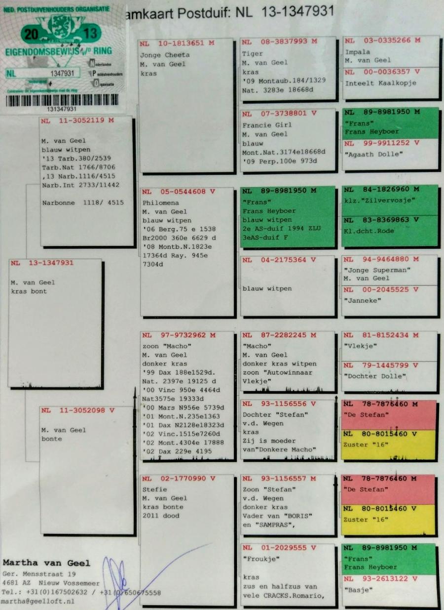 Nepot NL 13-1347938 M - Baza Crescatoriei Este tatal la doua surosi de cuib zburate Madona 1235 km `19 Birzai 1151 km 2020 Tartu 1360 km 2002 nevandut, nici o oferta |