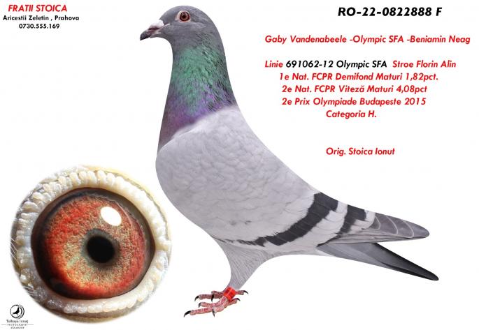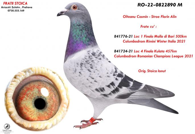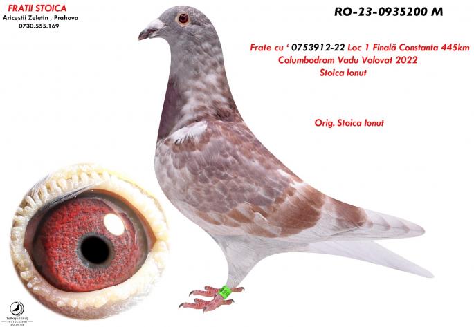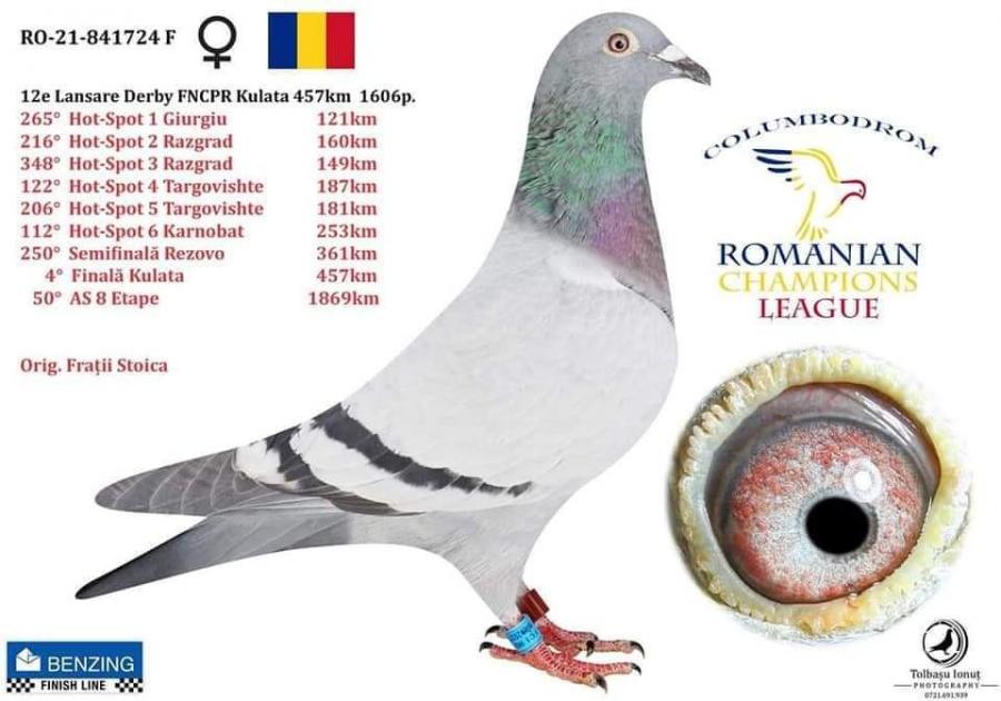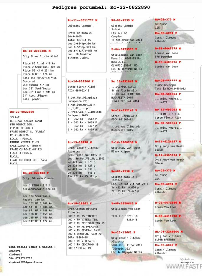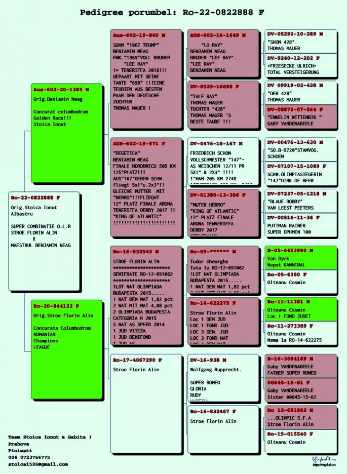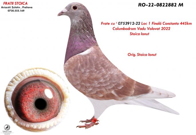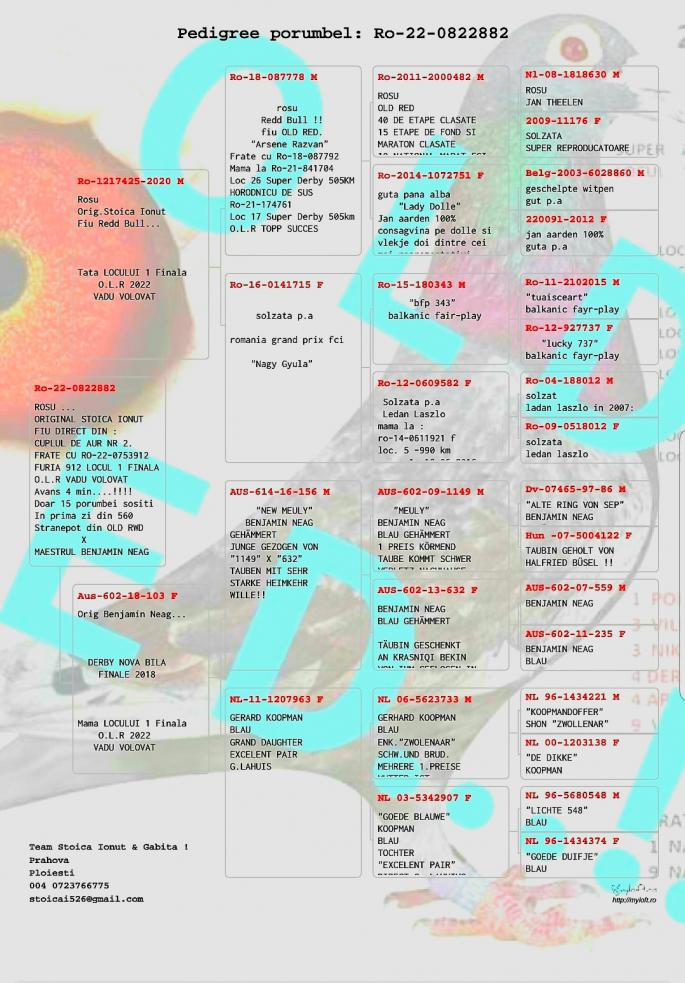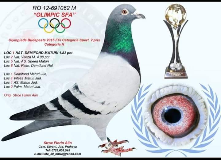 Fiu direct din Cuplu de Aur NR 2 ! Frate cu RO 22-753912 - FURIA 912 - Loc 1 Finala Vadu Volovat Avans de 4 minute Doar 15 porumbei sositi in prima zi de la 445 km castigator: Only O.L.R |