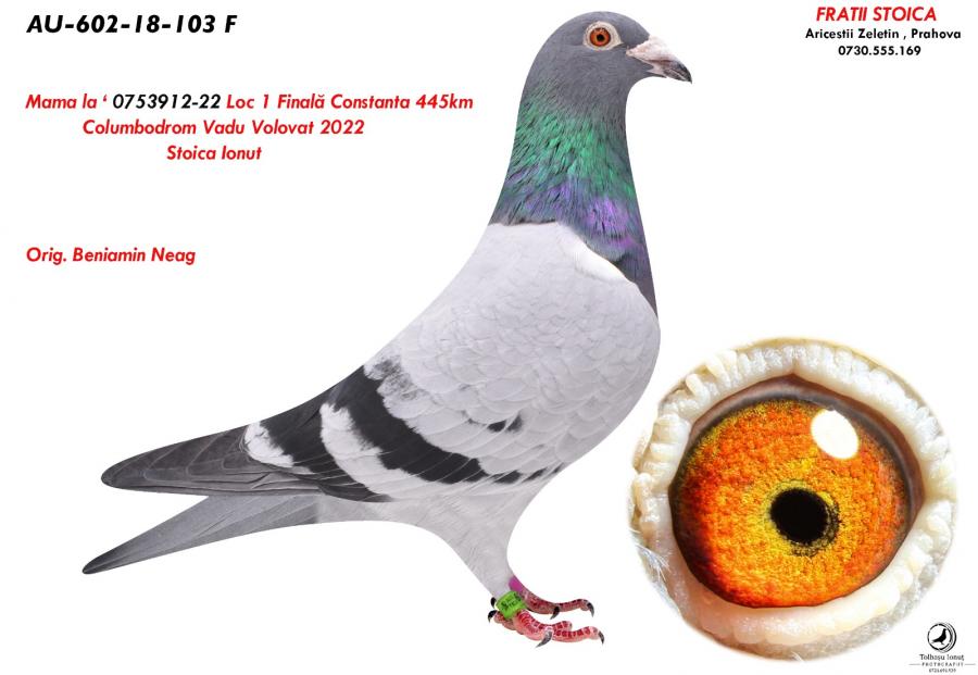 Fiu direct din Cuplu de Aur NR 2 ! Frate cu RO 22-753912 - FURIA 912 - Loc 1 Finala Vadu Volovat Avans de 4 minute Doar 15 porumbei sositi in prima zi de la 445 km castigator: Uzy |