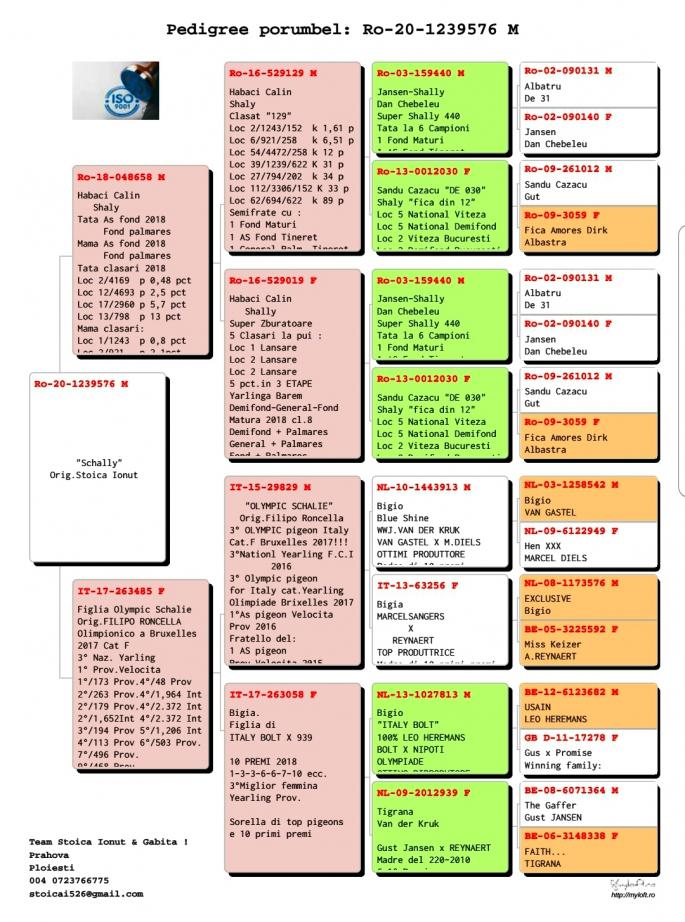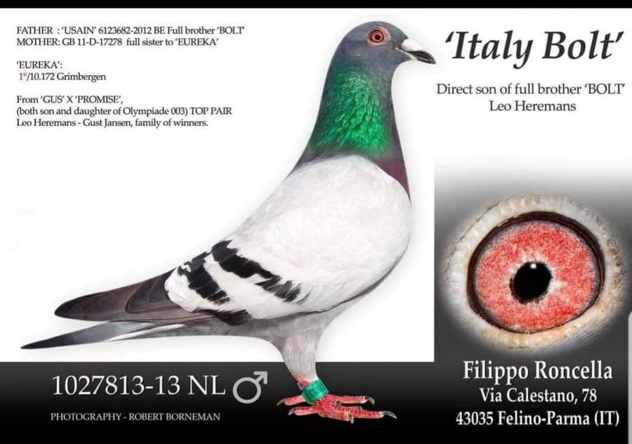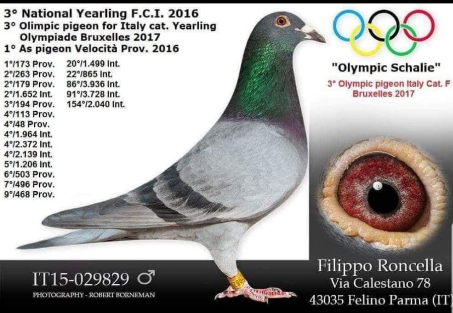 Nepot OLYMPIC SCHALIE - Filipo Roncella 3 Olympic Pigoen italia Cat. F. Bruxelles 2017 3 National Yearling F.C.I. 2016 3 Olympic Pigeon Italia Cat. Y. 1 AS pigeon Velocita Prov. `16