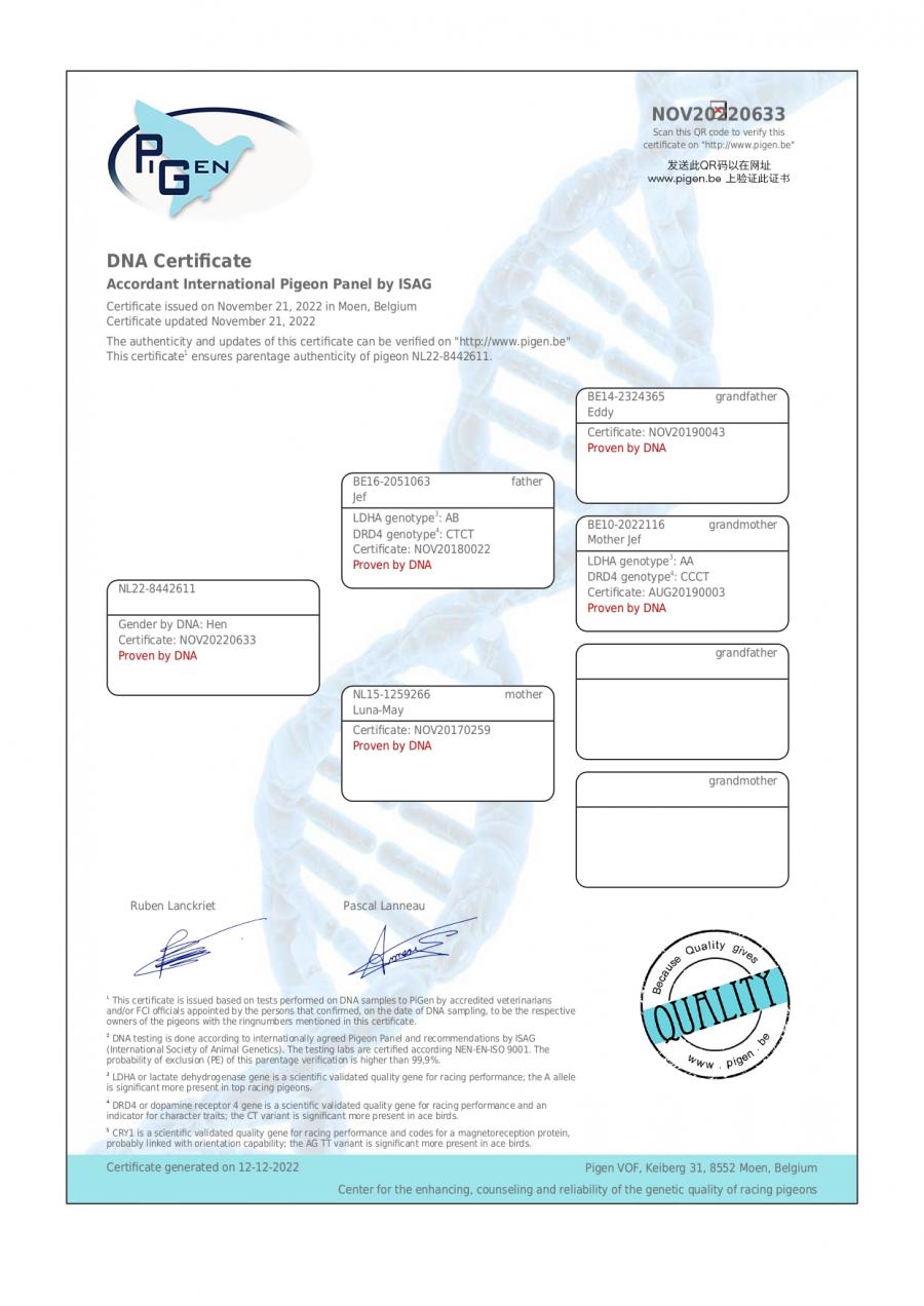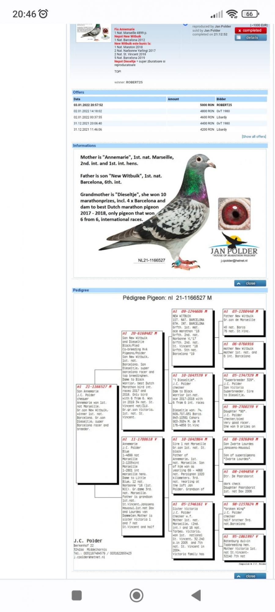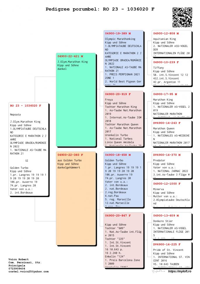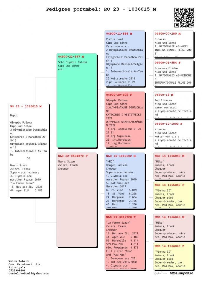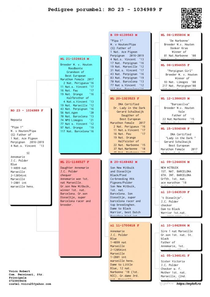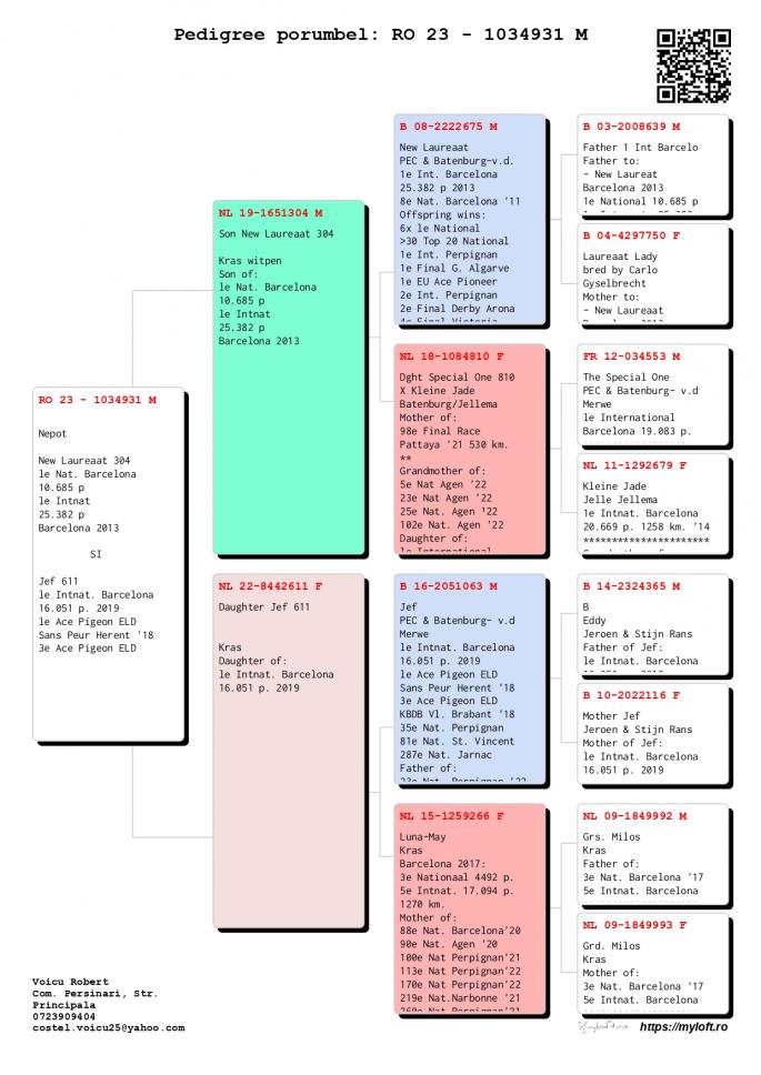 Nepoata PIERRE - SUPER REPRODUCATOR SI ZBURATOR Tata la : WINNER EPR AGEN `22 1st European Ace on 2 International Races 2019 1st ACE Zlu Race 2019 2nd Nat. St. Vicent `19 2nd Int. St. Vicent `19 5 5th Nat. Pau `19