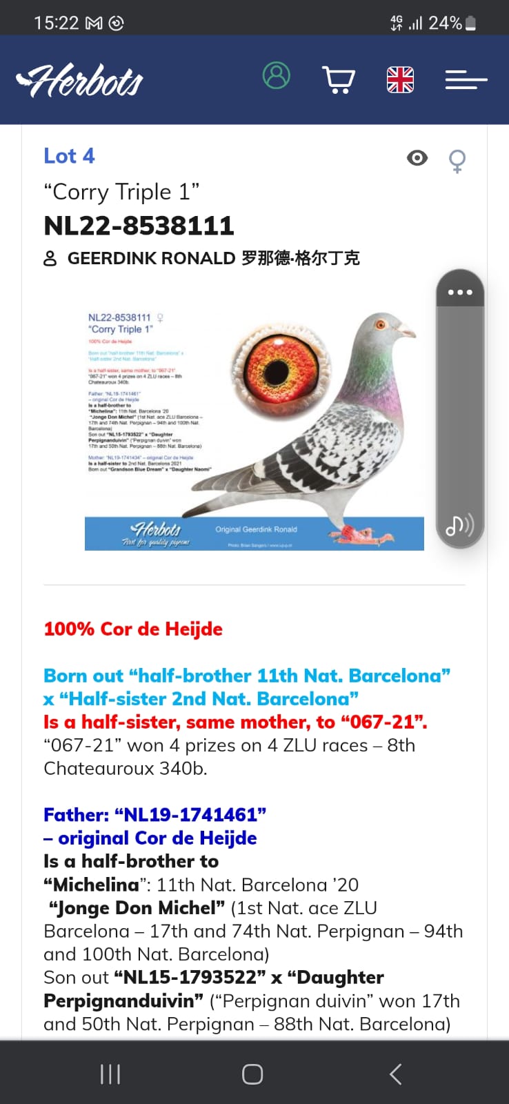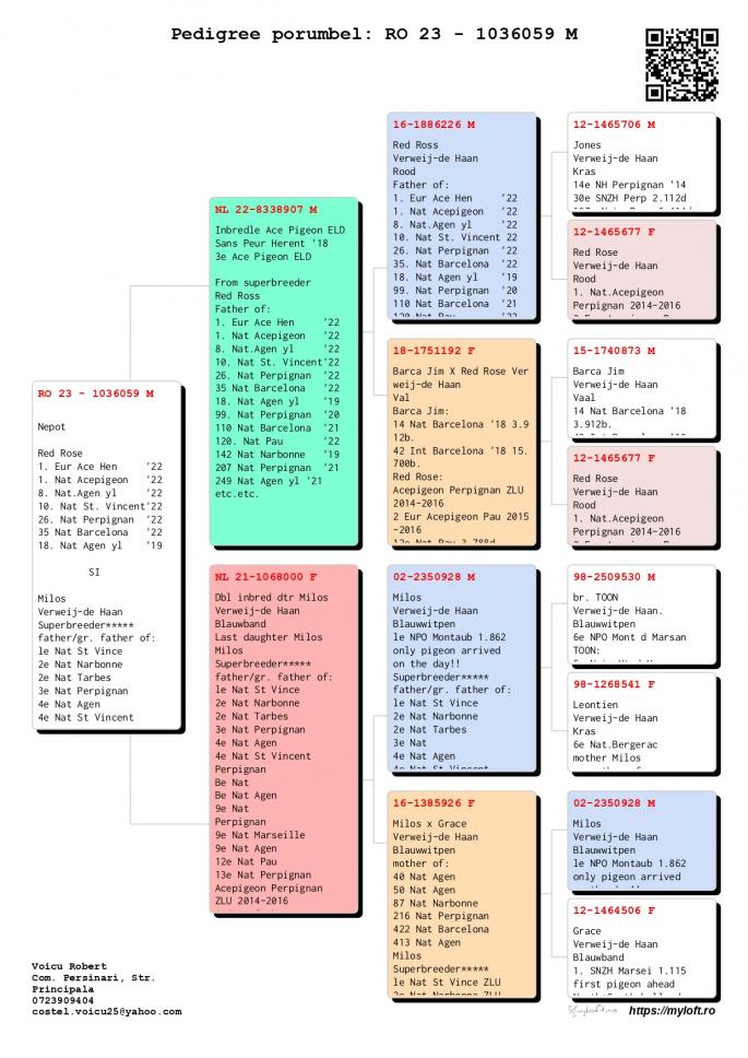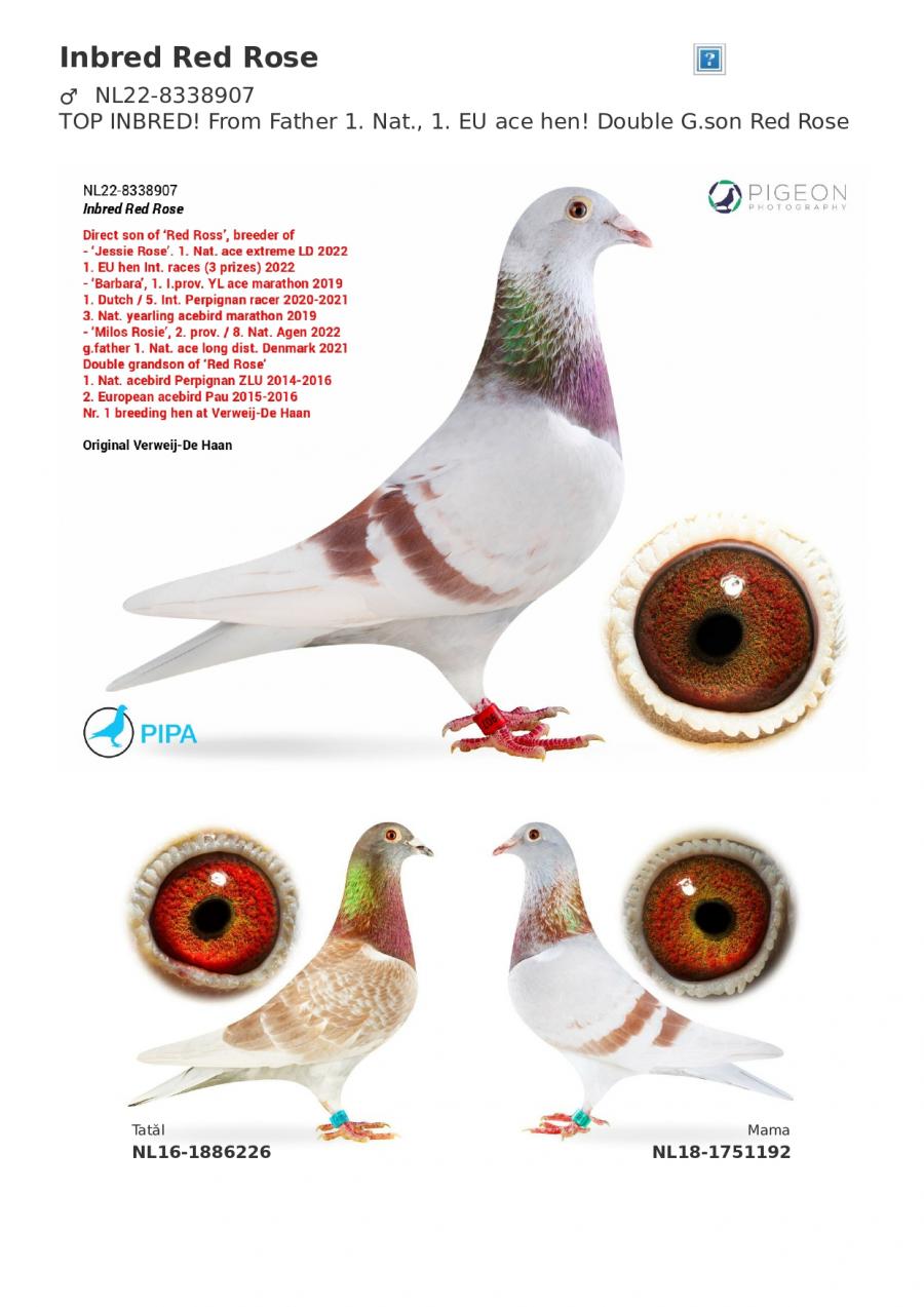 Nepot RED ROSS SUPER REPRODUCATOR ! Tata la : 1 Europa Ace Hen `22 1 Nat. Acepigeon `22 8 Nat. Agen YL `22 10 Nat. St. Vicent `22 26 Nat. Perpignan `22 35 Nat. Barcelona `22 18 Nat. Agen YL `19