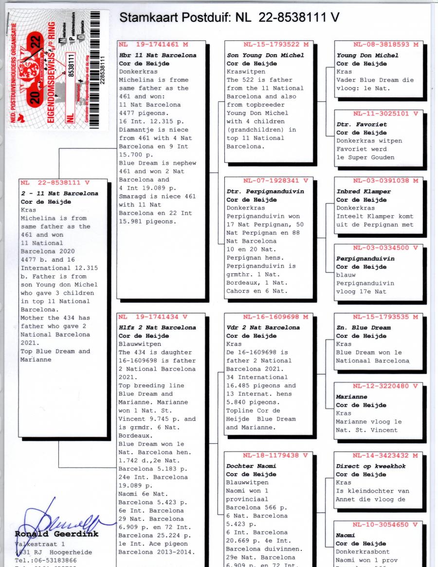 Mama este 100% Cor de Heijde Semi-sora cu 11 Nat. Barcelona Semi-sora cu 2 Nat. Barcelona