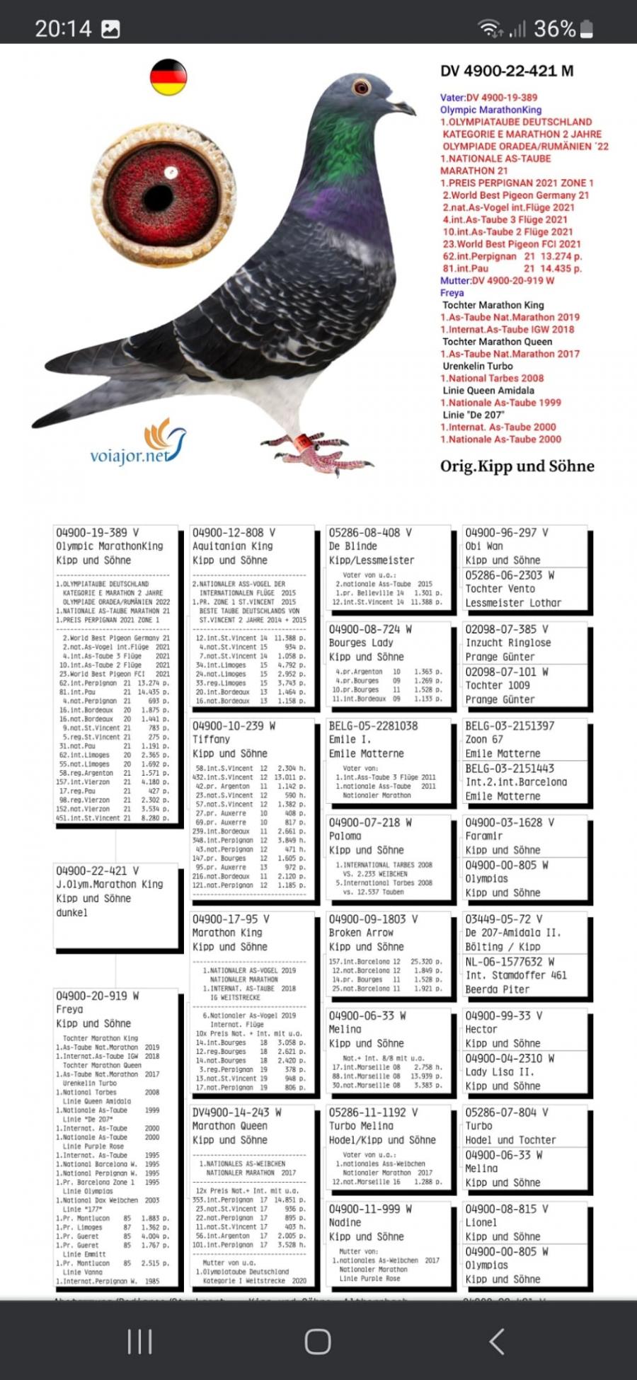 Nepoata OLYMPIC MARATHON KING 1 Olympiataube Deutschland Kategorie E Marathon 2 ani Olympiade Oradea - Romania 2022 1 Nationale AS-Taube Marathon 2021 1 Preis Perpignan 2021 ZONE 1 2 World Best Pigeon Germany `21 2 Nat. AS-Vogel Int. Fluge 2021