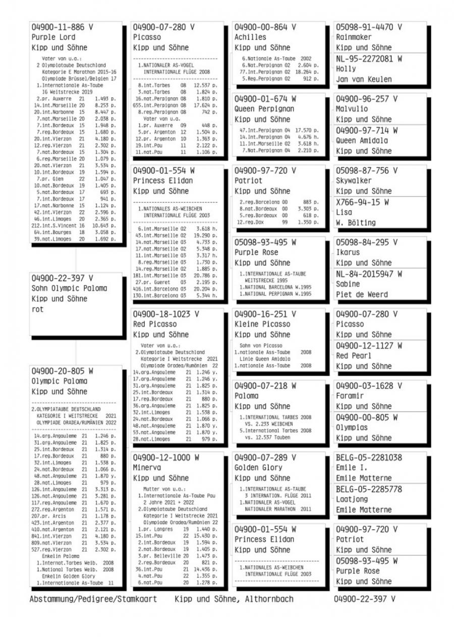 Nepot PURPLE LORT 2 Olympitaube Germania Deutschland Kategorie E Marathon `15-`16 Olympiade Bruxels - `17 1 Internationale AS-Tauben IG Weitstrecke 2019
