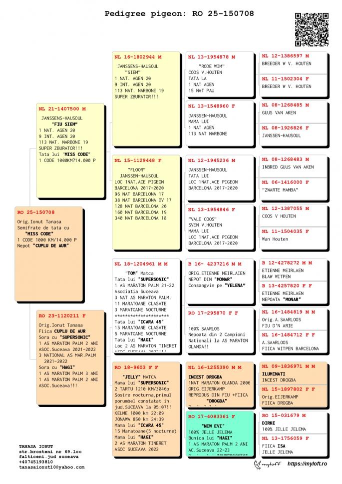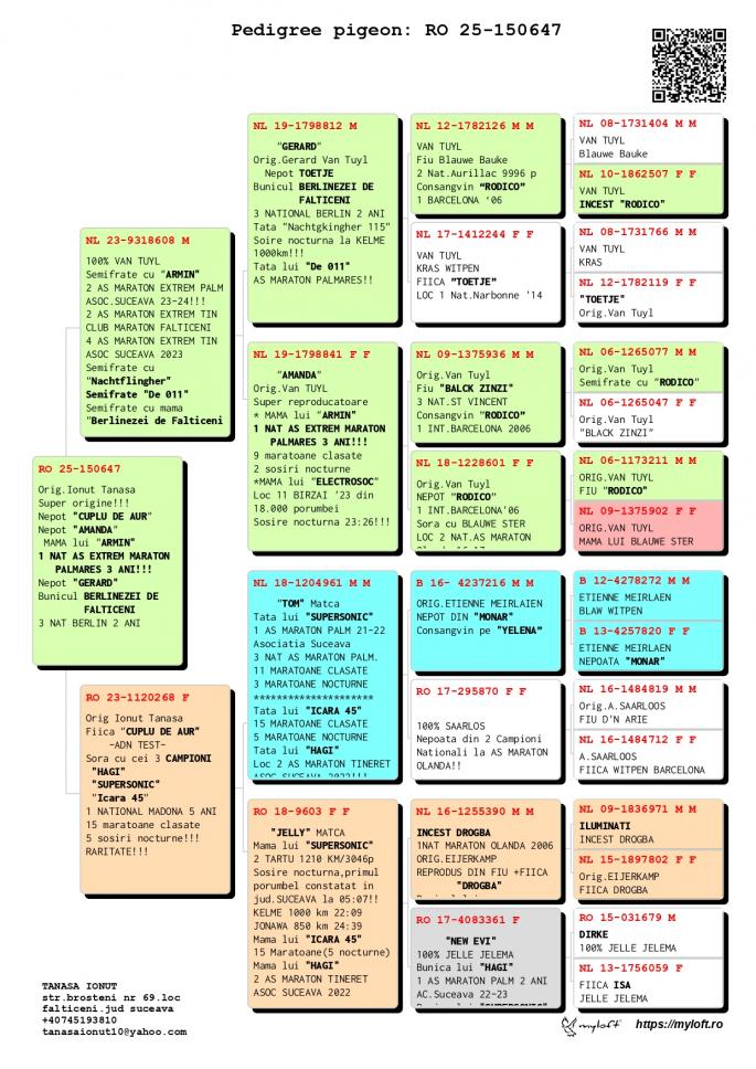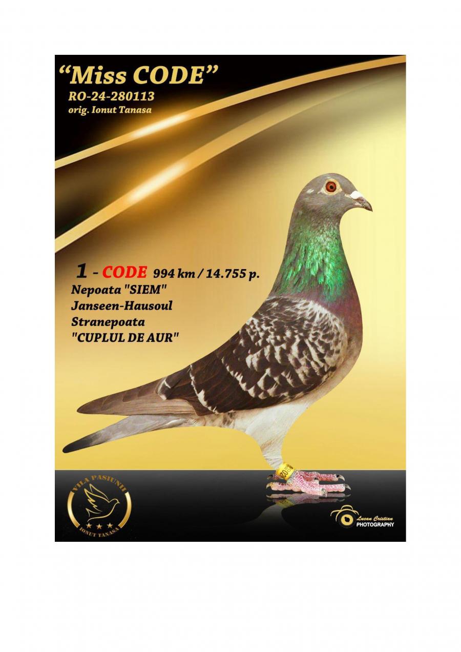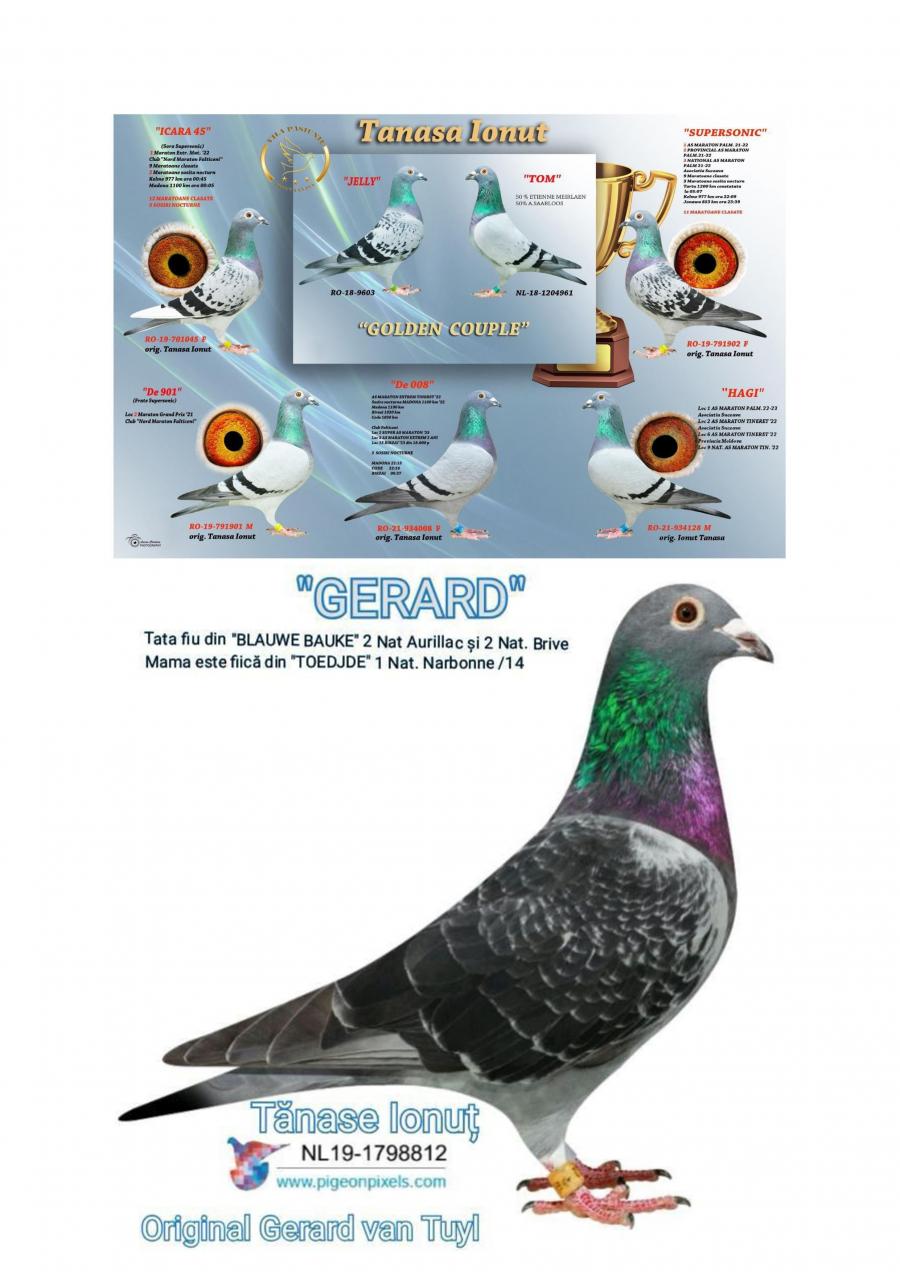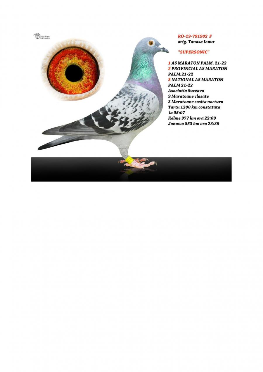 Nepoata ”CUPLU DE AUR”- baza crescătoriei ”VILA PASIUNII” IONUÈš TANASÄ‚ Cuplu care a reprodus campionii: ”SUPERSONIC”: - LOC 1 AS Maraton Palmares 2 ANI AsociaÈ›ia Suceava 21 -22; - LOC 3 AS Maraton Palmares 2 ANI NAÈšIONAL; - 11 Maratoane Clasate; - 3 Maratoane SOSITÄ‚ NOCTURN;