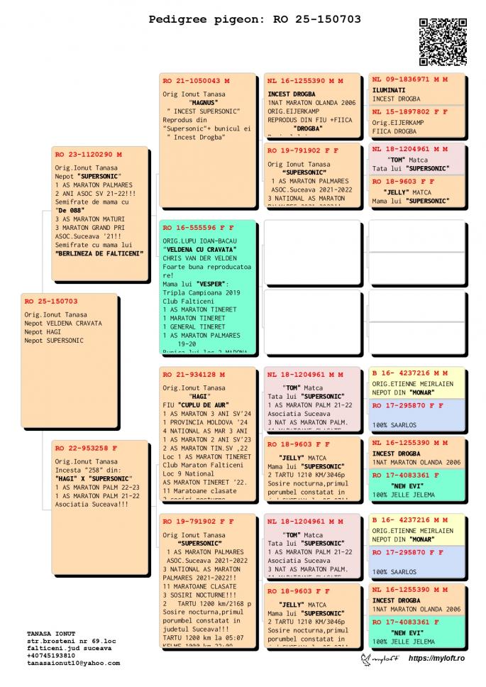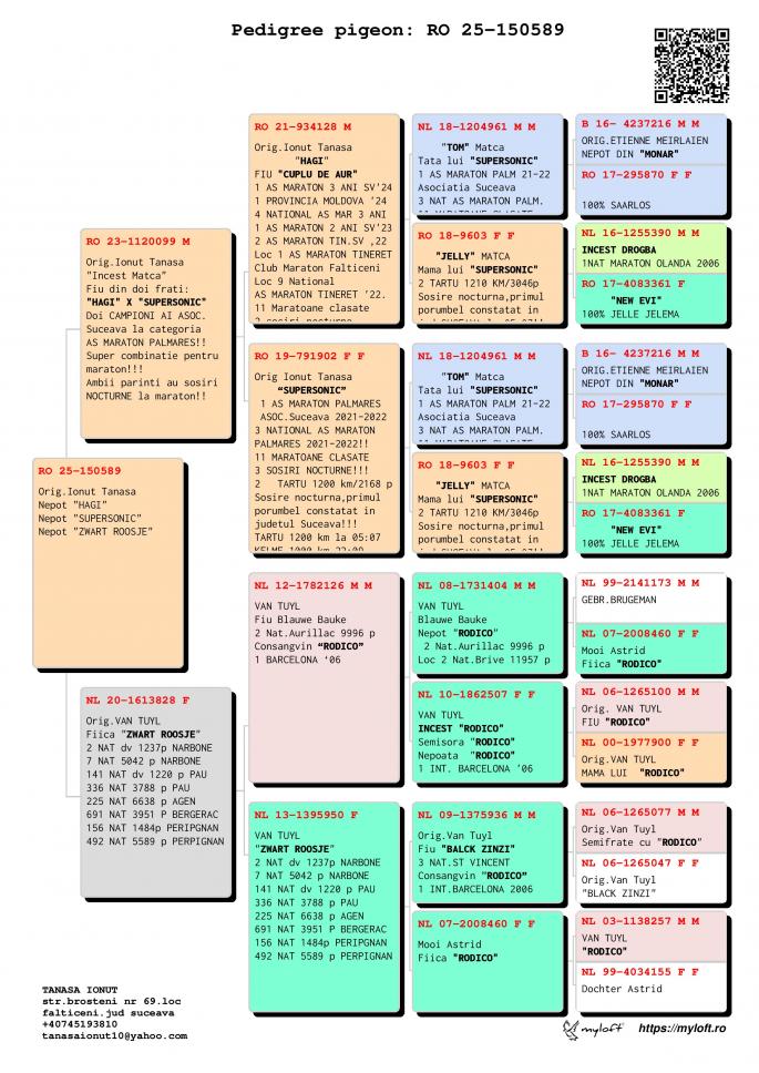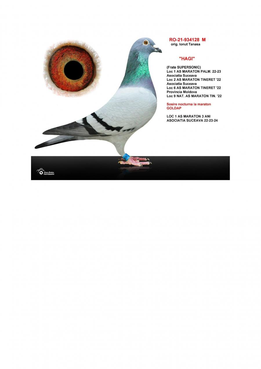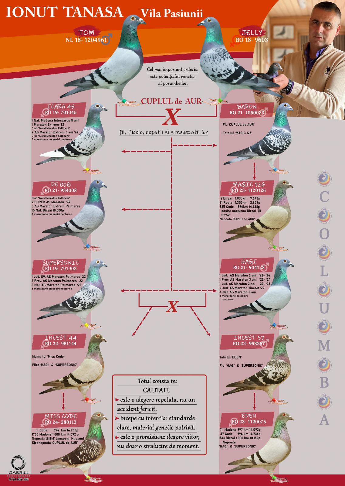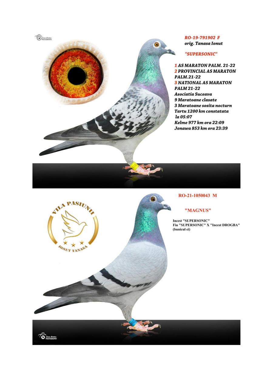 Nepot ”CUPLU DE AUR”- baza crescătoriei ”VILA PASIUNII” IONUÈš TANASÄ‚ Cuplu care a reprodus campionii: ”SUPERSONIC”: - LOC 1 AS Maraton Palmares 2 ANI AsociaÈ›ia Suceava 21 -22; - LOC 3 AS Maraton Palmares 2 ANI NAÈšIONAL; - 11 Maratoane Clasate; - 3 Maratoane SOSITÄ‚ NOCTURN;