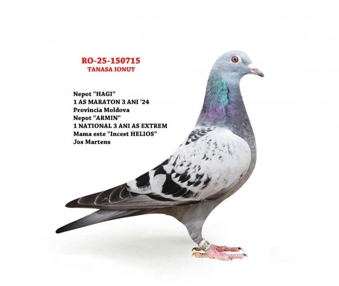 Nepot ”CUPLU DE AUR”- baza crescătoriei ”VILA PASIUNII” IONUÈš TANASÄ‚ Cuplu care a reprodus campionii: ”SUPERSONIC”: - LOC 1 AS Maraton Palmares 2 ANI AsociaÈ›ia Suceava 21 -22; - LOC 3 AS Maraton Palmares 2 ANI NAÈšIONAL; - 11 Maratoane Clasate; - 3 Maratoane SOSITÄ‚ NOCTURN; ”HAGI”: - LOC 1 AS Maraton Palmares 3 ANI AsociaÈ›ia Suceava 22 - 24; - LOC 1 AS Maraton Palmares 2 ANI AsociaÈ›ia Suceava 22 - 23; - LOC 1 AS Maraton 3 ANI PROVINCIAL MOLDOVA 22 - 24; - LOC 4 NaÈ›ional AS Maraton 3 ANI; - 11 Maratoane Clasate; - 3 SOSIRI NOCTURNE la Maraton: - GOLDAP 23 - BIRZAI 24 - MADONA 25. ”ICARA 45” -LOC 1 NAÈšIONAL Interpares MADONA 5 ani; - LOC 1 PROVICIA MOLDOVA Interpares MADONA 5 ani; - LOC 1 Maraton Extrem 22 Club ”NORD MARATON- Fălticeni; - LOC 2 Palmares AS EXTREM 3 ANI Club”NORD MARATON” Fălticeni - 15 Maratoane CLASATE; - 5 SOSIRI NOCTURNE: - KELME -00:45, - MADONA – 00:05, - MADONA – 22:34, - MADONA 24 – 22:36, - BIRZAI 24 22:55. *Tata este nepot ” SILKE” - Jele Jellema castigator: bmd |