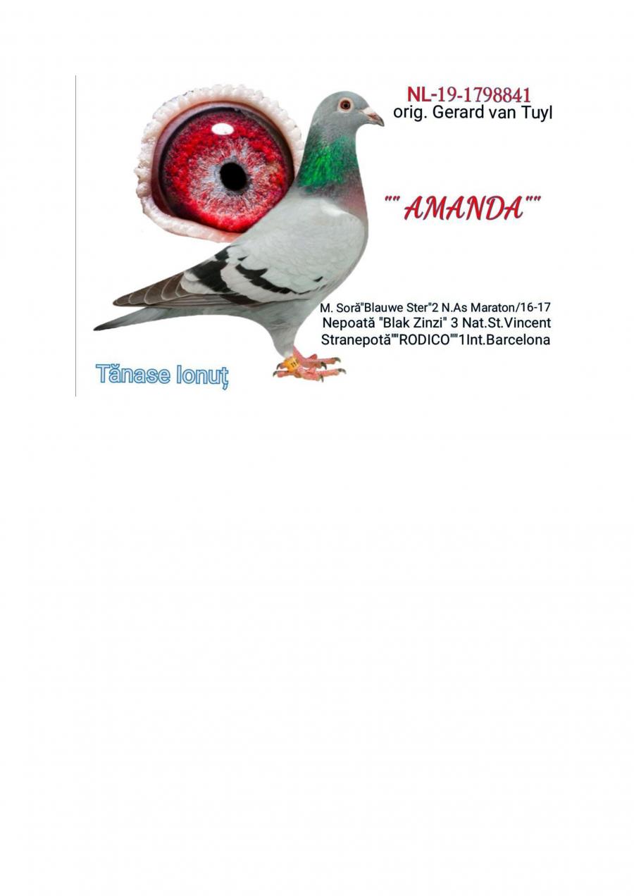 *Nepot ”AMANDA”- orig. VAN TUYL SUPER REPRODUCÄ‚TOARE MAMA lui ”ARMIN”: - LOC 1 NAÈšIONAL AS EXTREM 3 ANI - LOC 2 AS EXTREM MARATON 2 ANI AsociaÈ›ia Suceava 2023 – 2024 - LOC 7 NAÈšIONAL AsociaÈ›ia Suceava 2023 – 2024 Sosire nocturnă Birzai 24 la ora 00:00 Sosire nocturnă Madona 25 la ora 00:01 MAMA lui ” ELECTROȘOC” - LOC 11 BIRZAI 23 din 18000p Sosire nocturnă 23:26