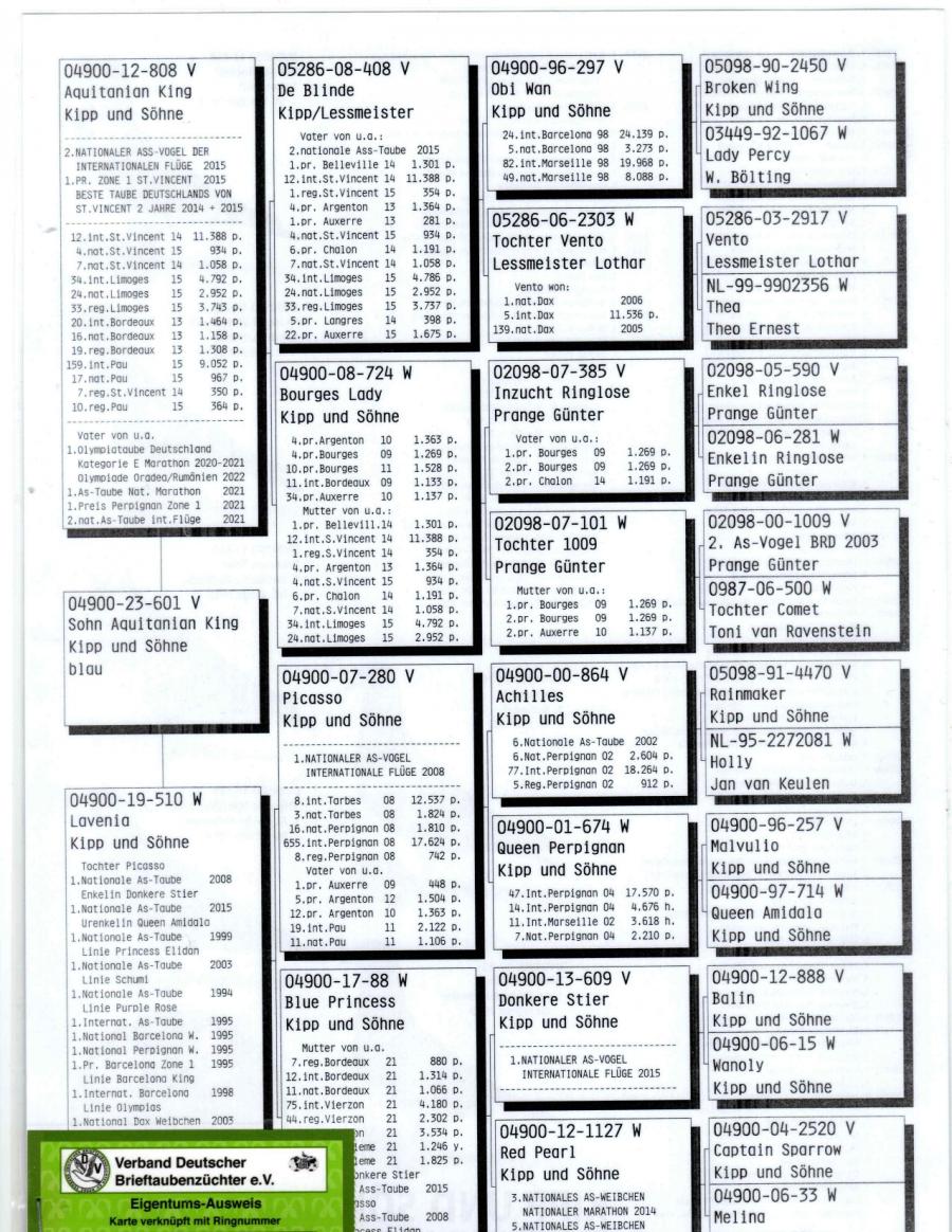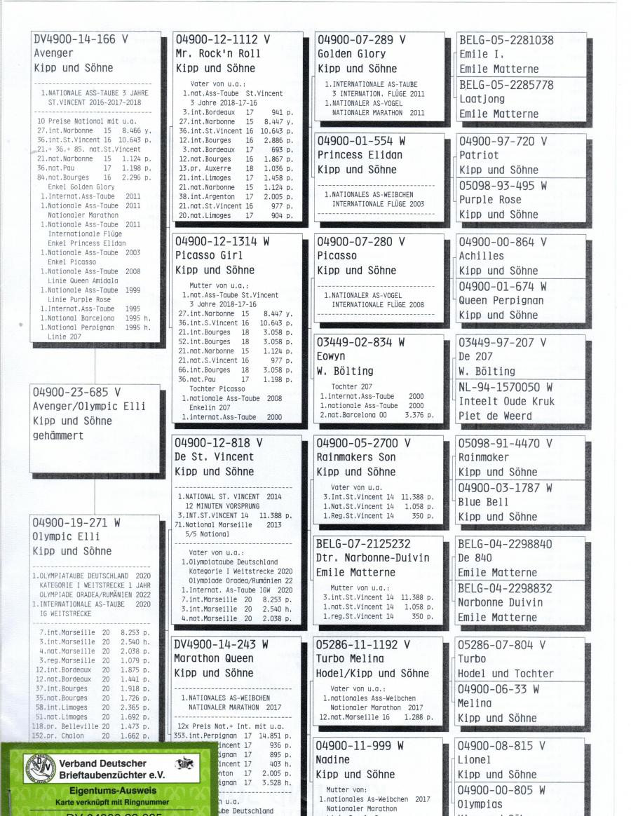 Nepoata PURPLE LORD 2 Olympitaube Germania Deutschland Kategorie E Marathon `15-`16 Olympiade Bruxels - `17 1 Internationale AS-Tauben IG Weitstrecke 2019