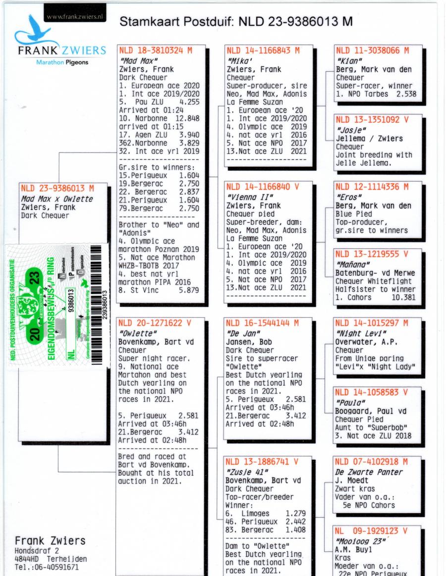 Nepoata EROS - Mark van den BERG SUPER REPRODUCATOR ! Bunic si strabunic la : 1 European ACE `20 1 INT. Ace `19-`20 4 Olympic ACE `19 4 Nat. Ace Yrl. `16 5 Nat. Ace NPO `17 13 Nat. Ace ZLU `21 2 Nat. Bergerac `16 4 Nat. St. Vicent `18 5 Nat. Pau ZLU `20 castigator: BOGDAN1 |