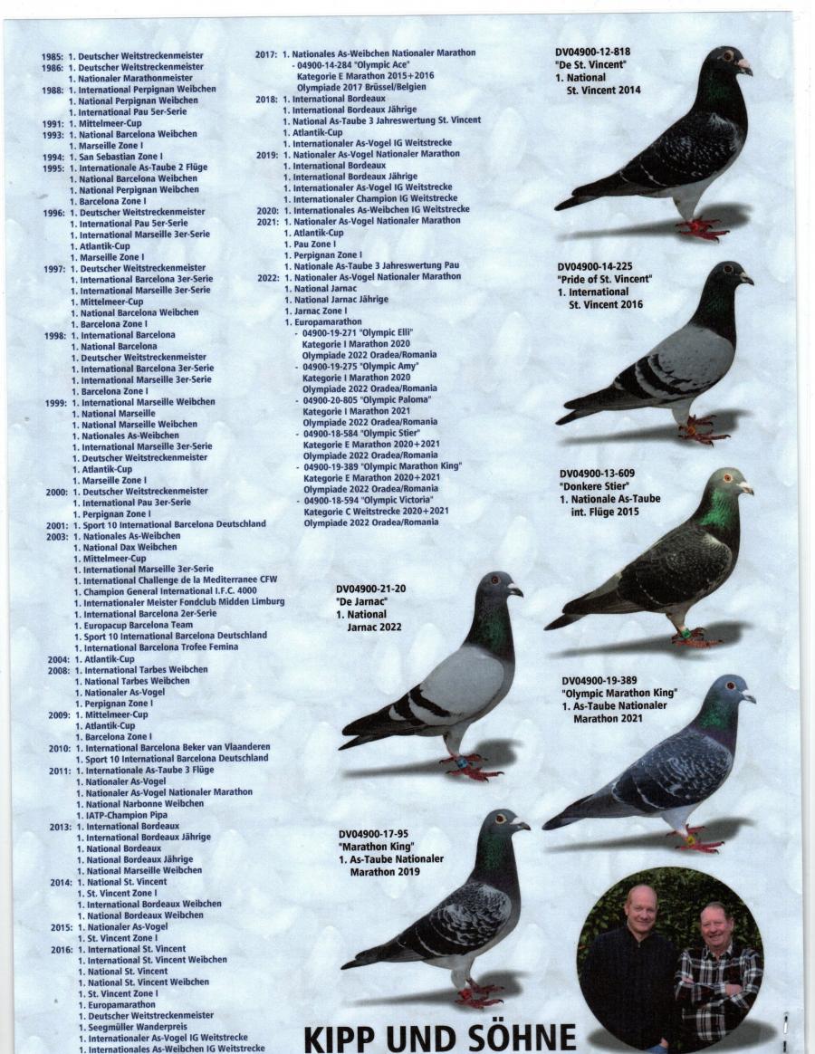 Nepot OLYMPIC MARATHON KING 1 Olympiataube Deutschland Kategorie E Marathon 2 ani Olympiade Oradea - Romania 2022 1 Nationale AS-Taube Marathon 2021 1 Preis Perpignan 2021 ZONE 1 2 World Best Pigeon Germany `21 2 Nat. AS-Vogel Int. Fluge 2021