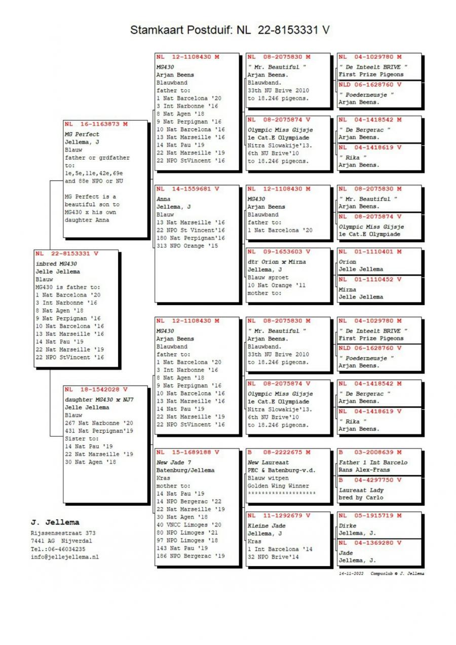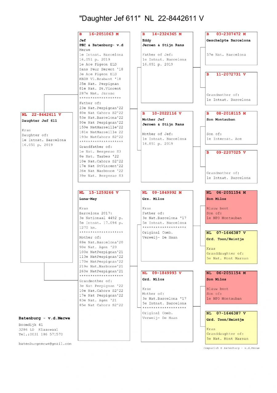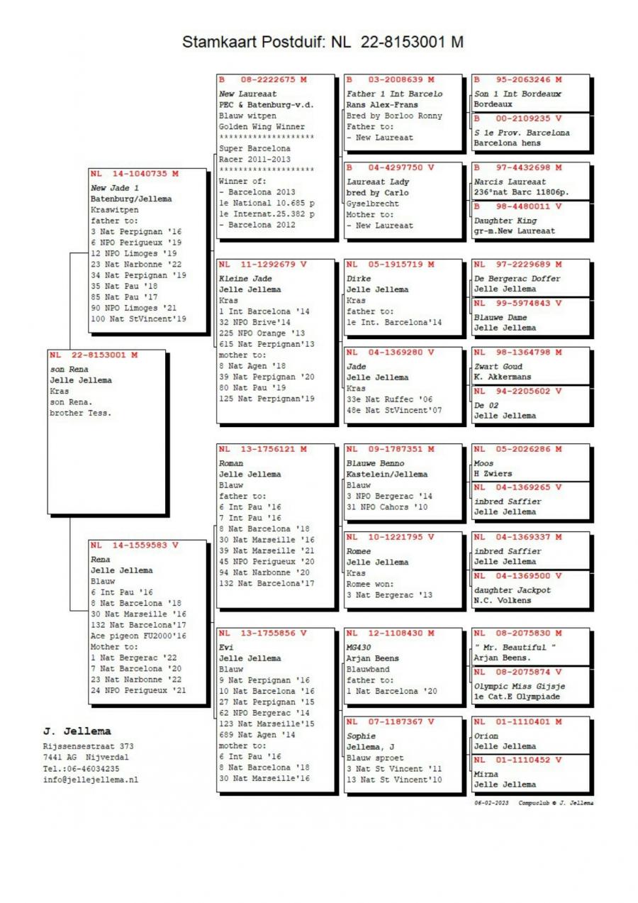 Nepoata JEF - Jeroen & Stijn Rans 1e Int. Barcelona `19 - 16051 p. 1e Ace Pigeon Extreme Long Distance Sans Peur Herent `18 3e Ace Pigeon Extreme Long Distance KBDB VL. Brarbant `18 35e Nat. Perpignan `18 - 3966 p.