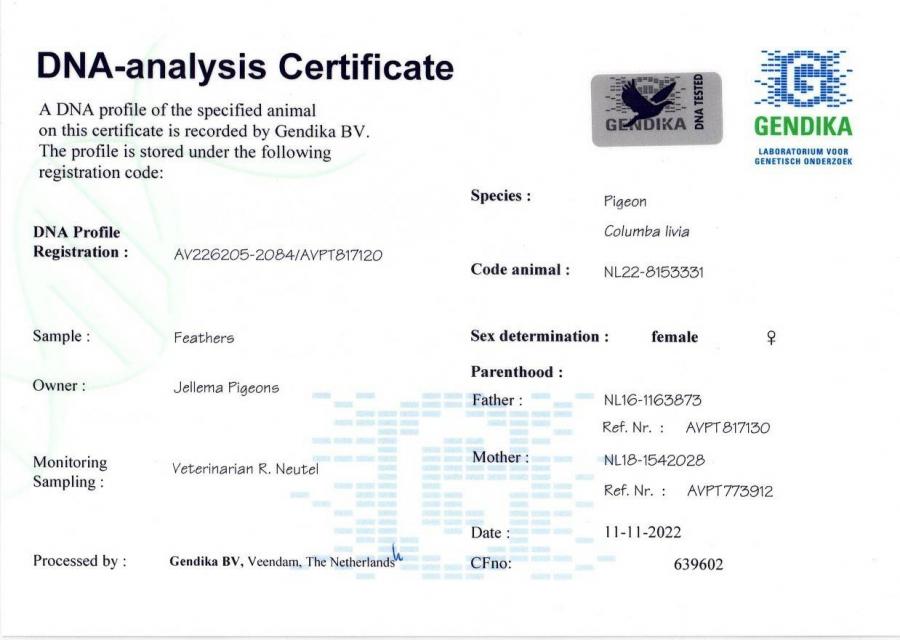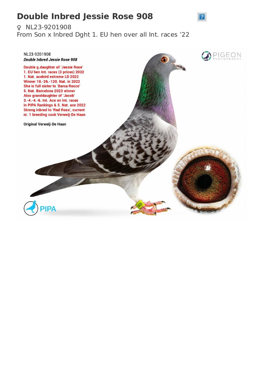 Dublu stranepot JESSIE ROSE 1 Int. Eur.Acepigeon Hens Pipa Ranking `22 castigator: Gabriela |