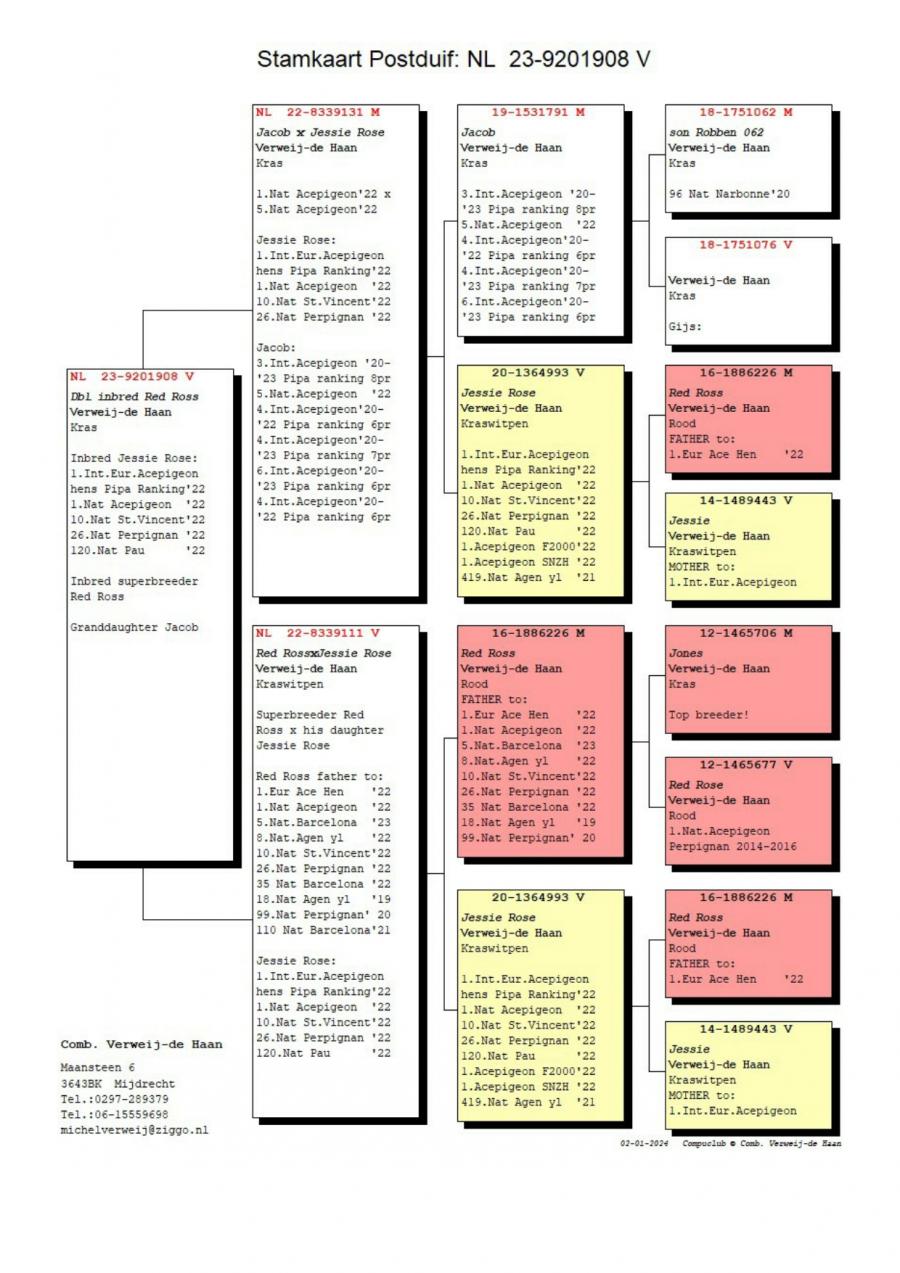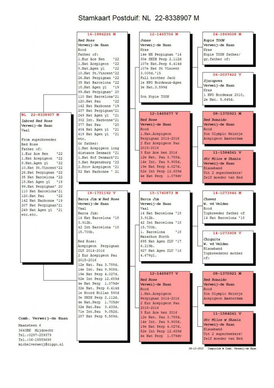 Nepot si stranepot RED ROSS - SUPER REPRODUCATOR ! Tata la : 1 Europa Ace Hen `22 1 Nat. Acepigeon `22 8 Nat. Agen YL `22 10 Nat. St. Vicent `22 26 Nat. Perpignan `22 35 Nat. Barcelona `22 18 Nat. Agen YL `19