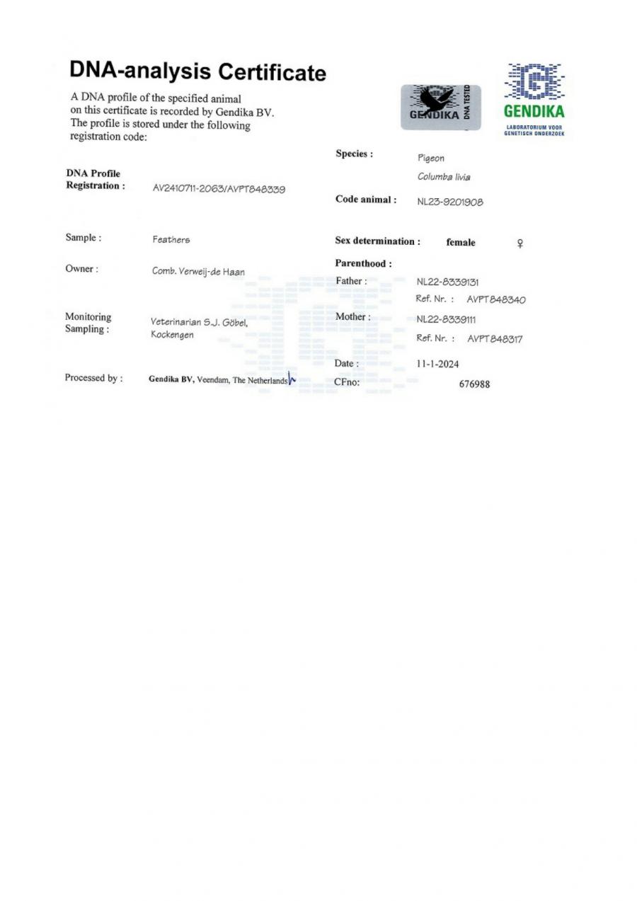 Nepoata LUNA-MAY 3 Nationaal 4492p. 5e IntNat. 17094 p. 1270 km Mama la: 88e Nat. Barcelona`20 90e Nat. Agen `20 100e Nat. Perpignan `21 113e Nat. Perpignan `22 170e Nat. Perpignan `22