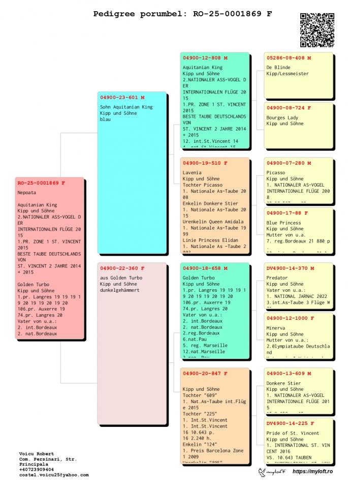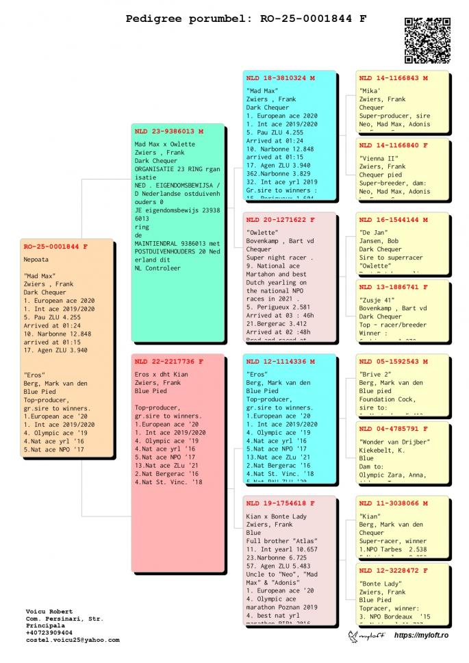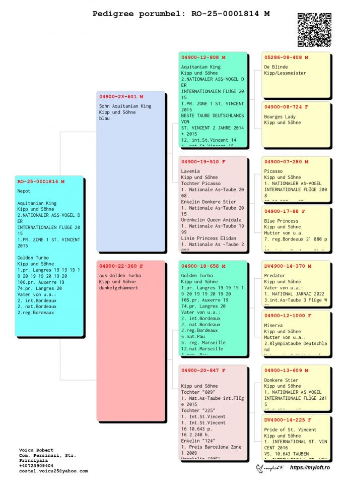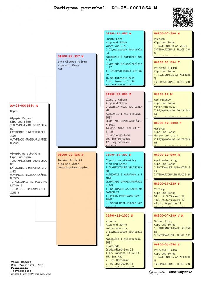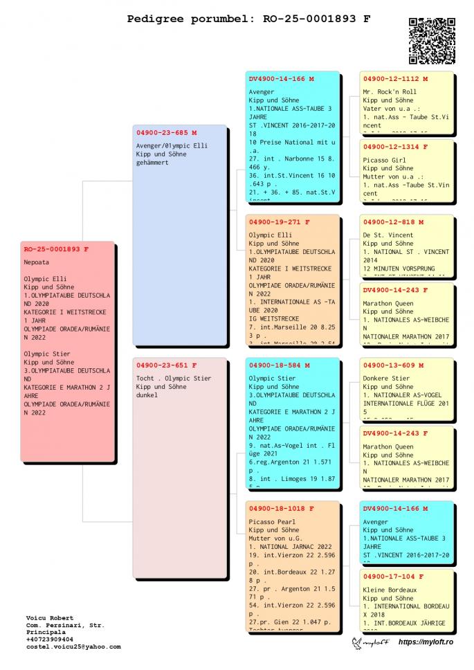 Nepot MINERVA Mama la : 2 Olympiataube Deutchland Kategoria I Weistrecke 2021 Olympiade Romania Oradea 2022 castigator: Cobalt |