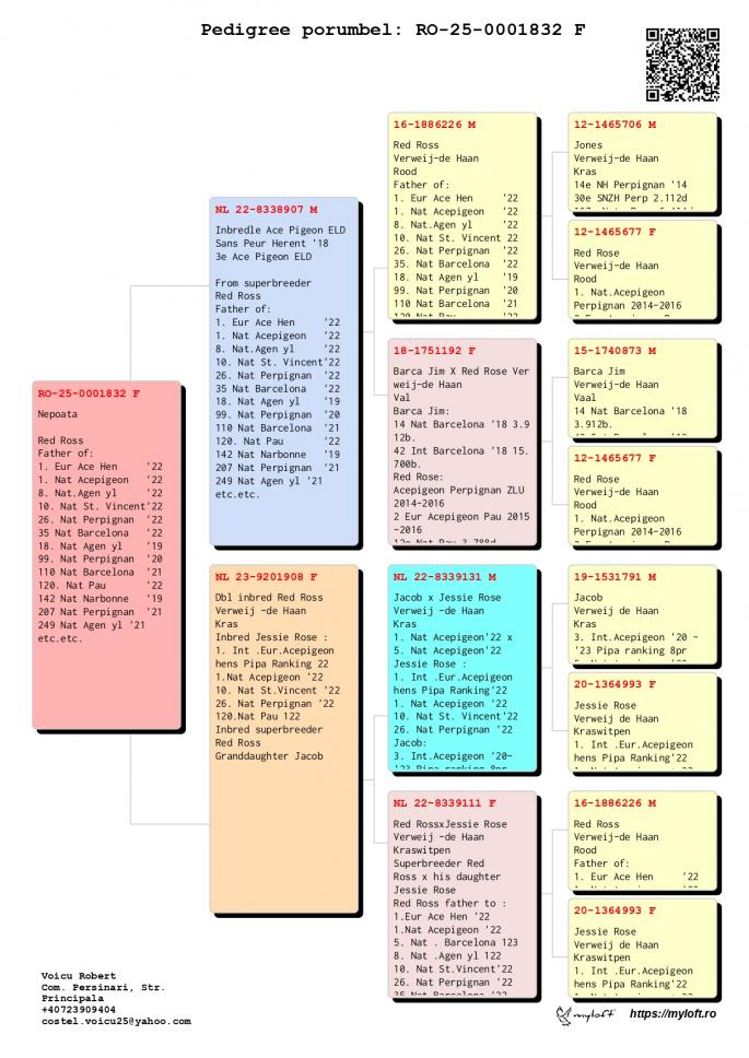 Nepoata si stranepoata RED ROSS - SUPER REPRODUCATOR ! Tata la : 1 Europa Ace Hen `22 1 Nat. Acepigeon `22 8 Nat. Agen YL `22 10 Nat. St. Vicent `22 26 Nat. Perpignan `22 35 Nat. Barcelona `22 18 Nat. Agen YL `19