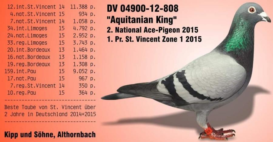Nepoata AQUITANIAN KING 2 Nationaler ASS Vogel DER Internationalen Fluge 2015 1 PR Zone 1 St. Vicent 2015 BEST TAUBE DEUTSCHLANDSVON