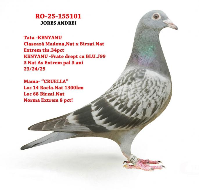 Tata este semi-frate CRUELLA Loc 14 ROELA - `25 - 1300 km Loc 68 Birzai Nat. 16786 p. Extrem 2025 - 8.87 pct