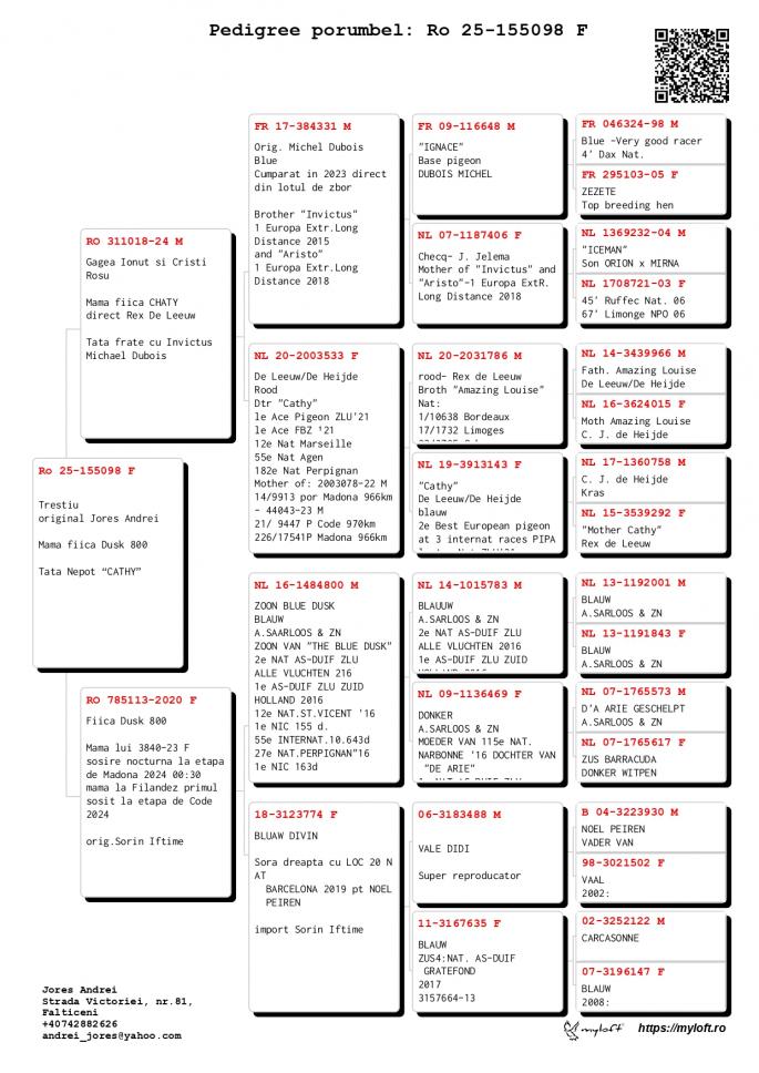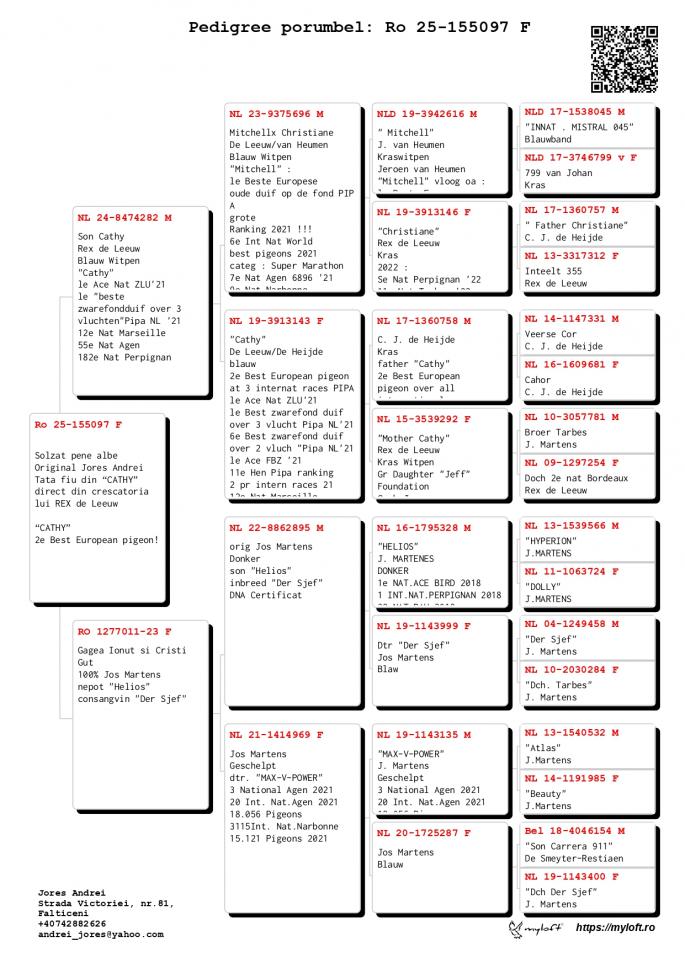 Tata este nepot CATHY - De Leeuw / De Heijde 1e ACE Pigeon ZLU `21 1e ACE FBZ `21 2e Best European Pigeon 3e Int. Races Pipa 12e Nat. Marseille 55e Nat. Agen