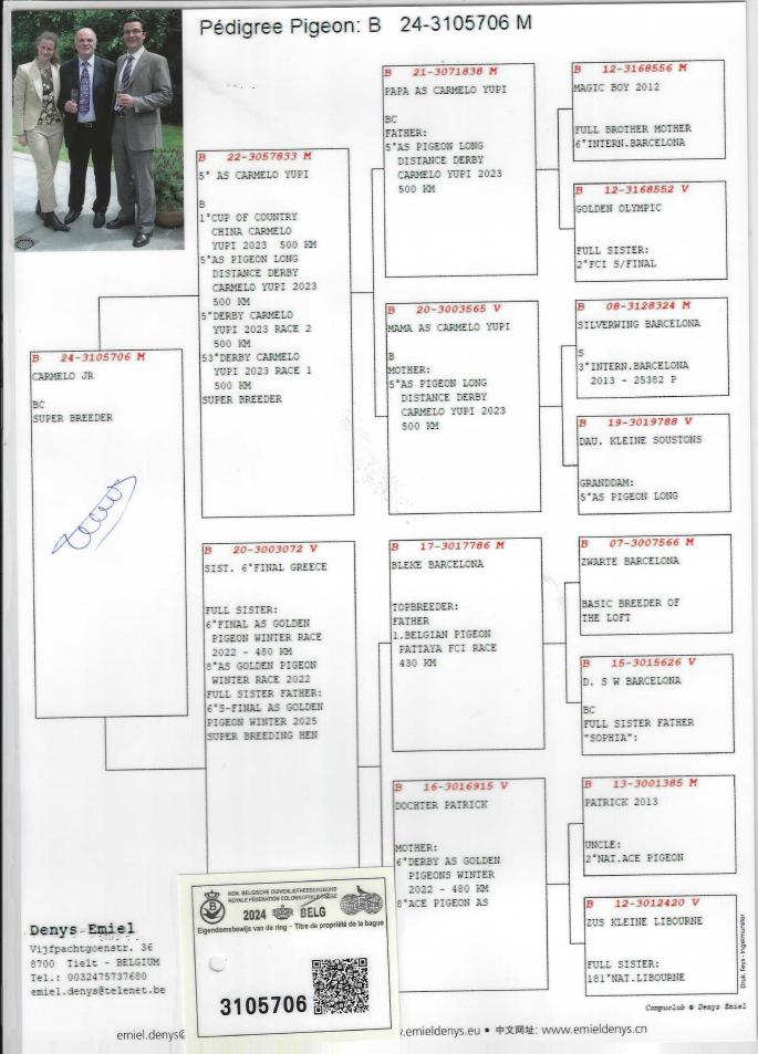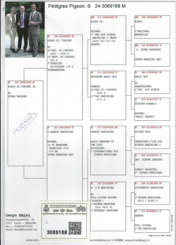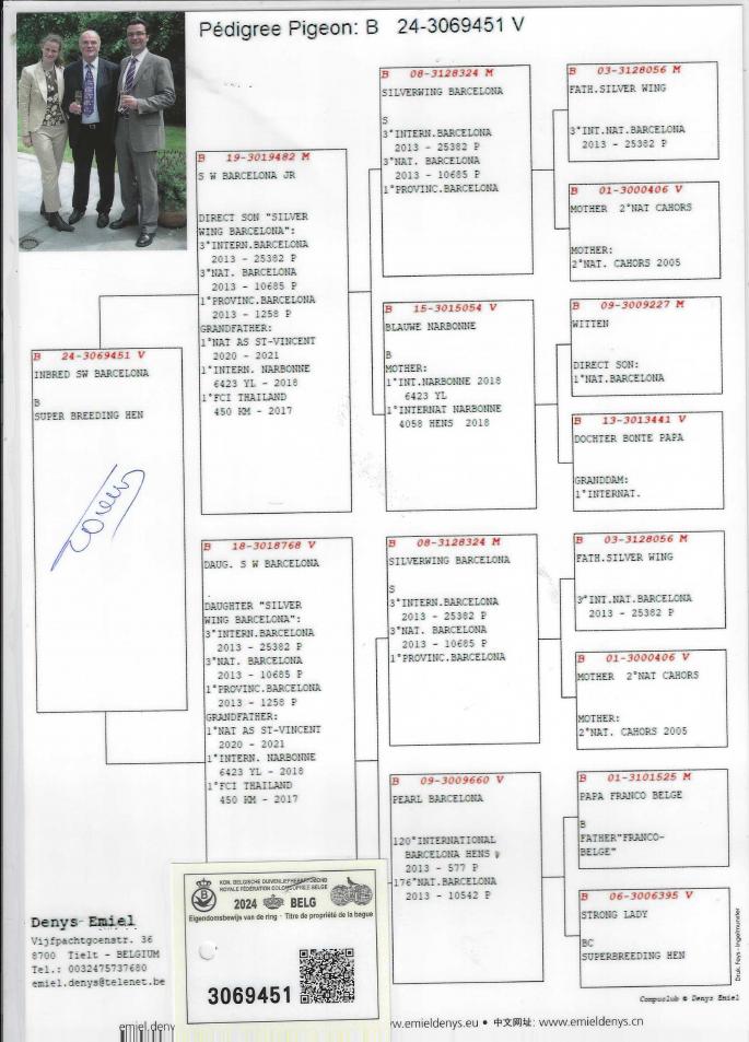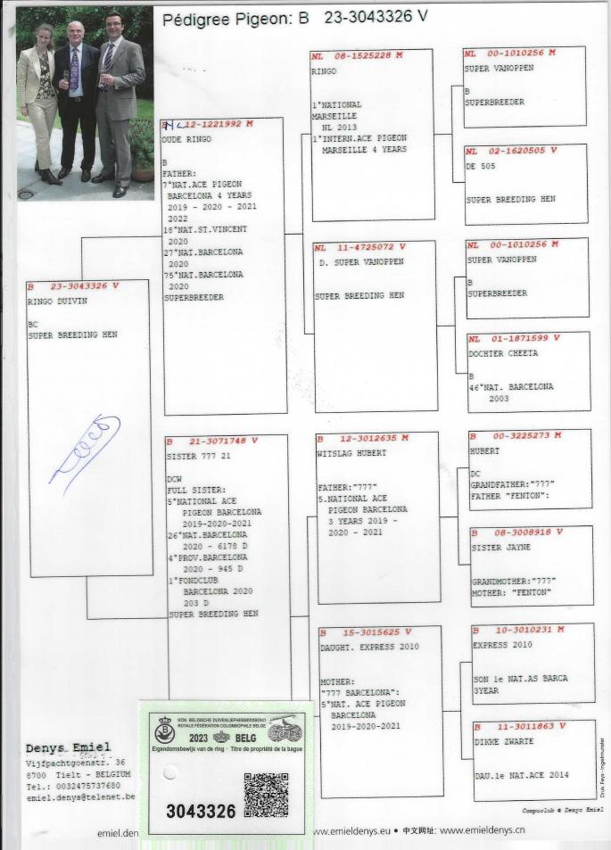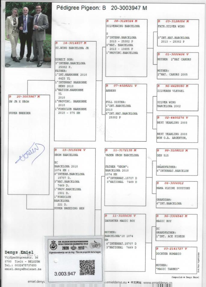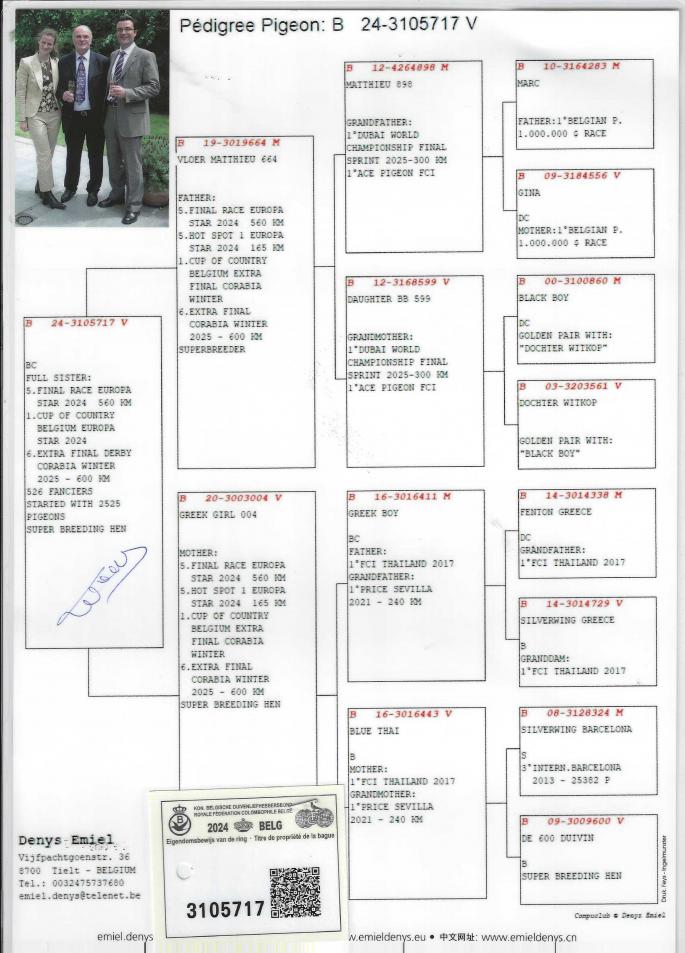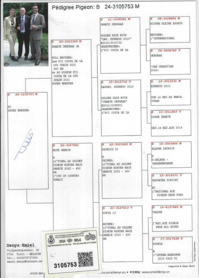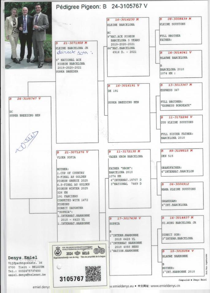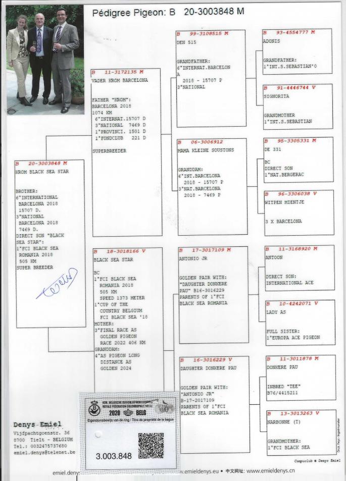 Emiel Denys este o legenda vie a sportului columbofil international. Cu traditie in acest sport, Emiel Denys a castigat tot ce se putea castiga pe plan columbofil. Pentru a doua oara, va oferim un grup de 10 porumbei cu origini alese, porumbei cu sange de top pentru iubitorii concursurilor de maraton dar si cativa porumbei cu sange de esceptie pentru iubitorii de OLR.