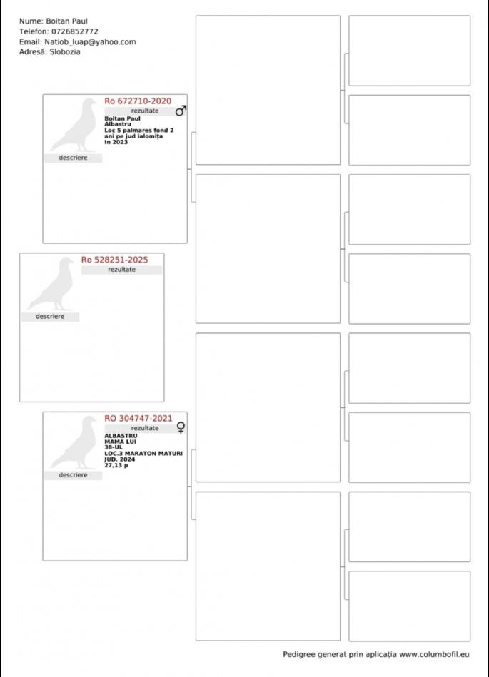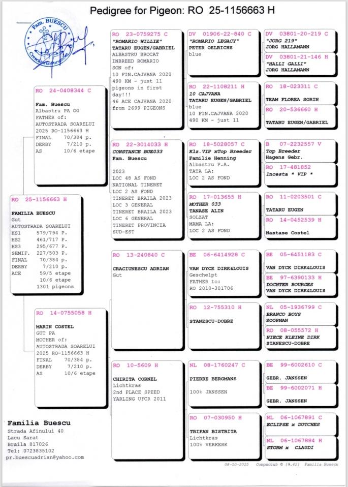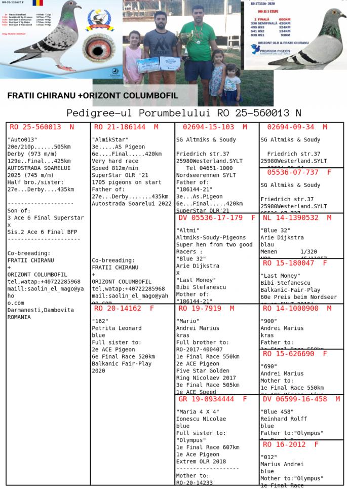 1 Derby 144 Finala 263 Semi-Finala 113 HS 3 600 HS 2 156 HS 1 21 Ace pigeon castigator: O.R. Pigeondreamer |