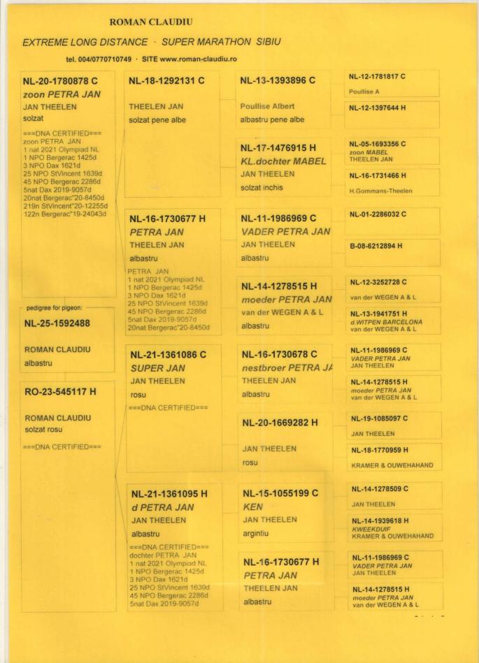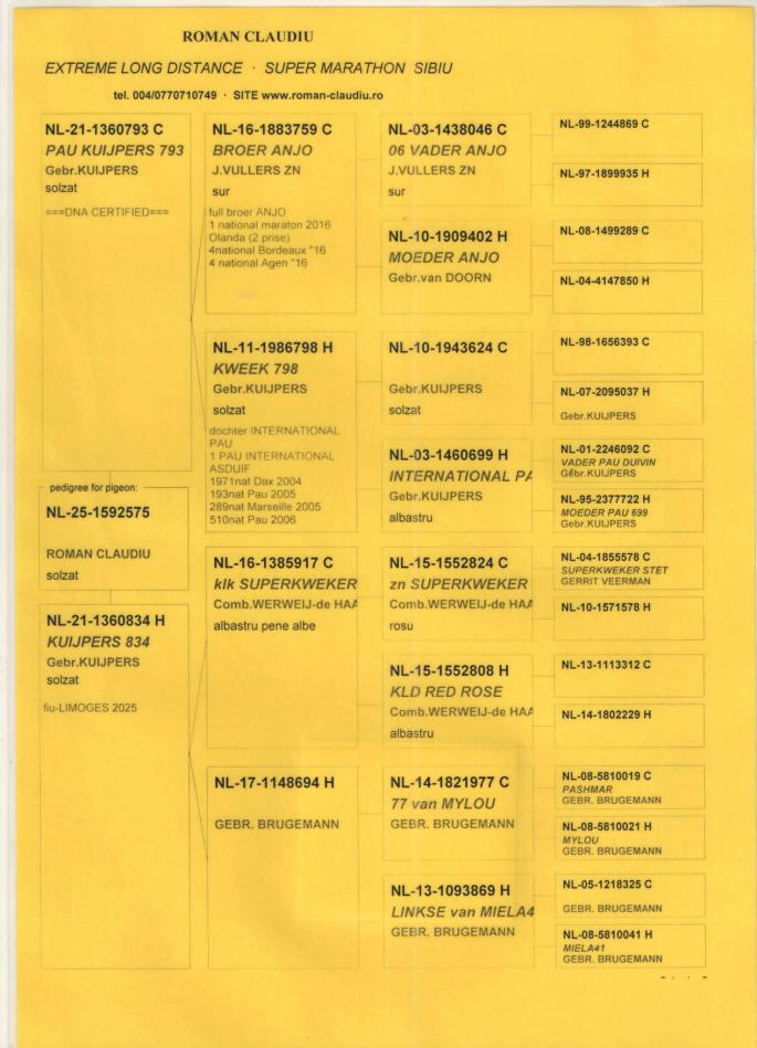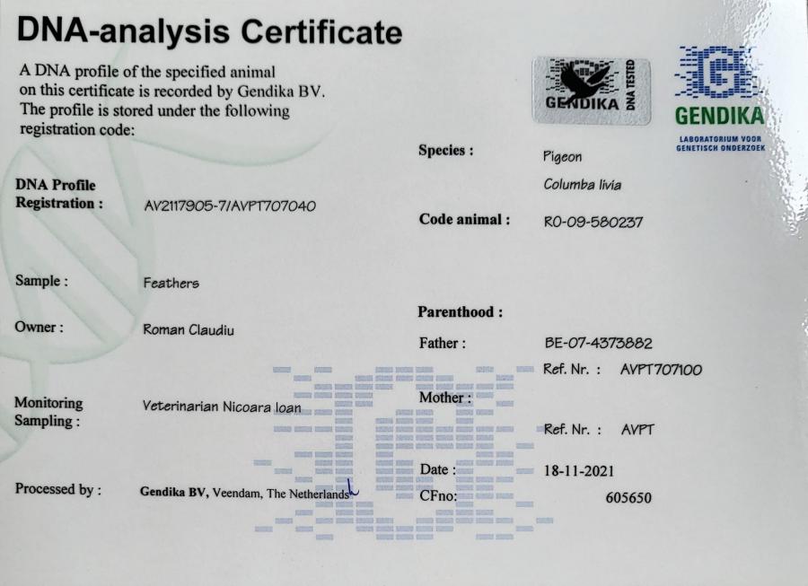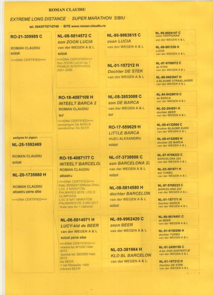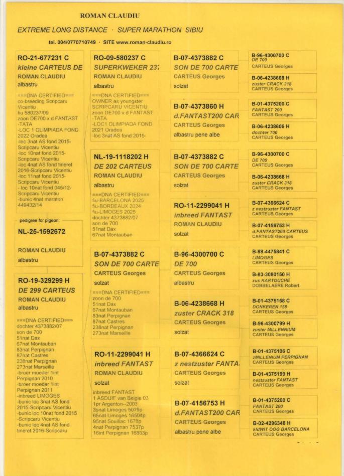 TATA 100% CARTEUS din RO 09-580237(tata loc 1 international fond Olimpiada 2021-Scripcaru Vicentiu, loc 3 national AS fond 2015......SUPERBREEDER 237- fiu BE 07-4373882(fiu DE700) x fiica BE 07-4373882(fiu DE700)