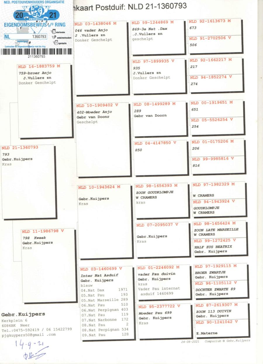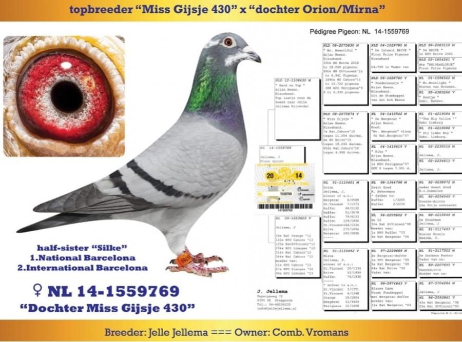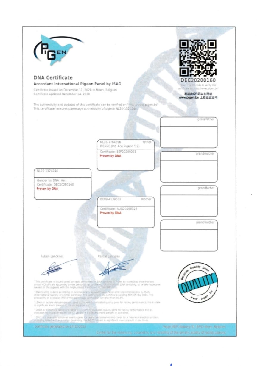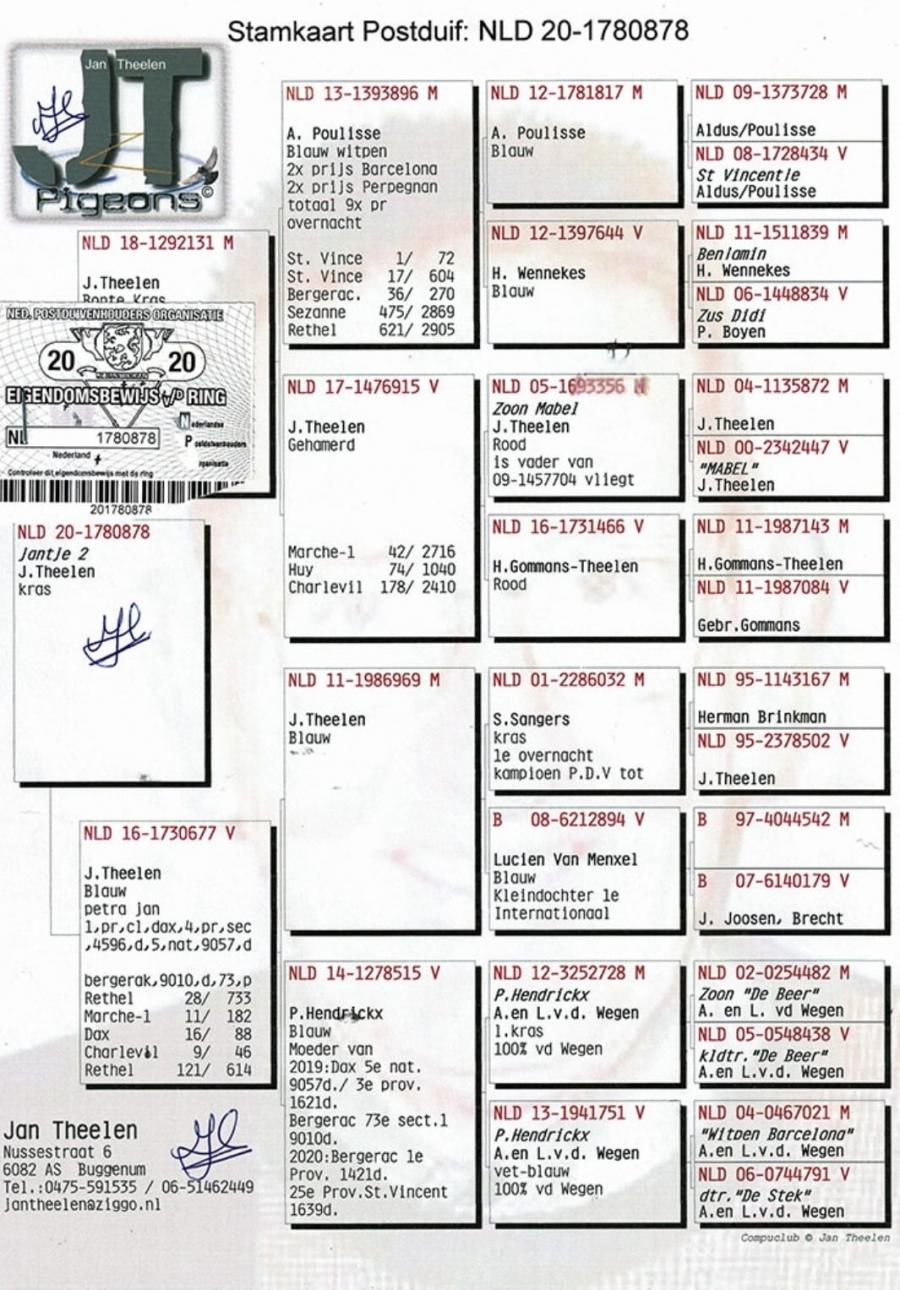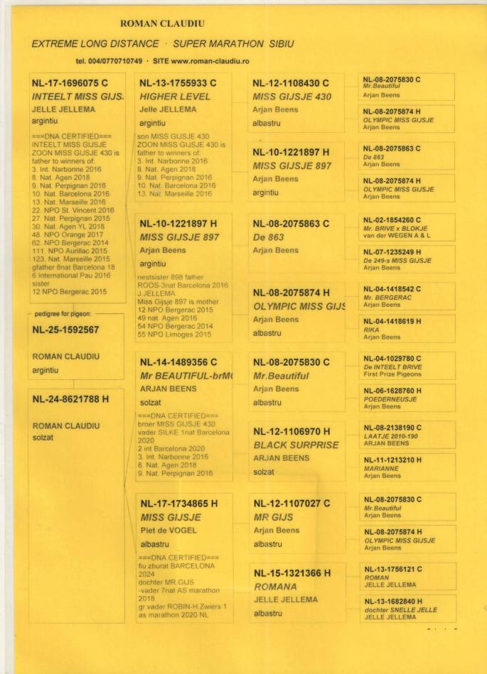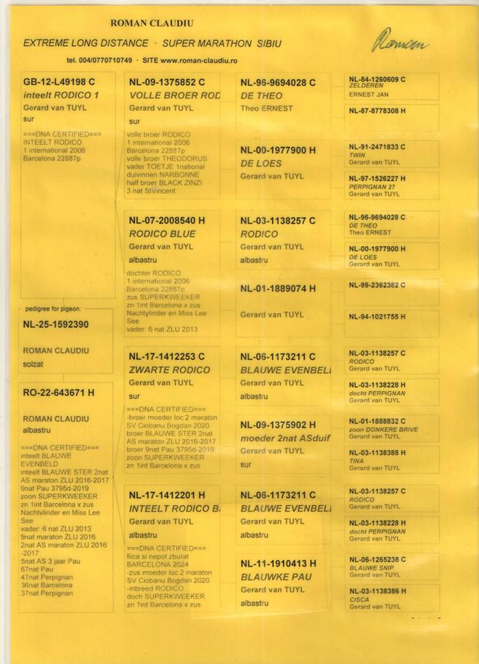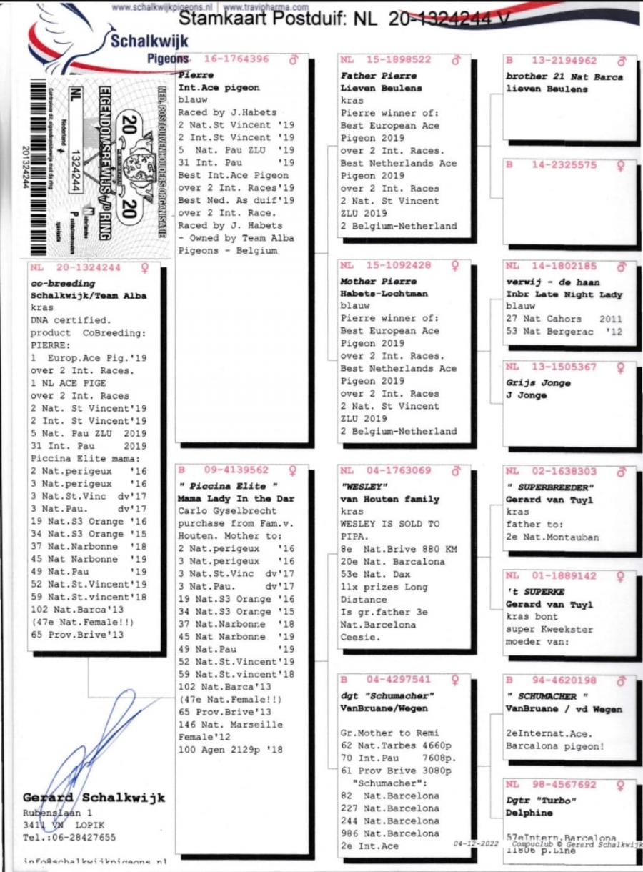 TATA NL 06-1026014 original Gebr.HAGENS (fiu ANGELO x sora SARINA)bunic 3 international VIERZON 2024, BARCELONA 2024.ANGELO e bunic 2 international BARCELONA 2019, 5 national marathon 2020 PIPA(3 DRIETJES), 7 national BARCELONA 2009(ROSITA), 7 national BARCELONA 2013(GIJS), 2 national BARCELONA 2020-2023(LILIBET), vader EPKE, ODILE......