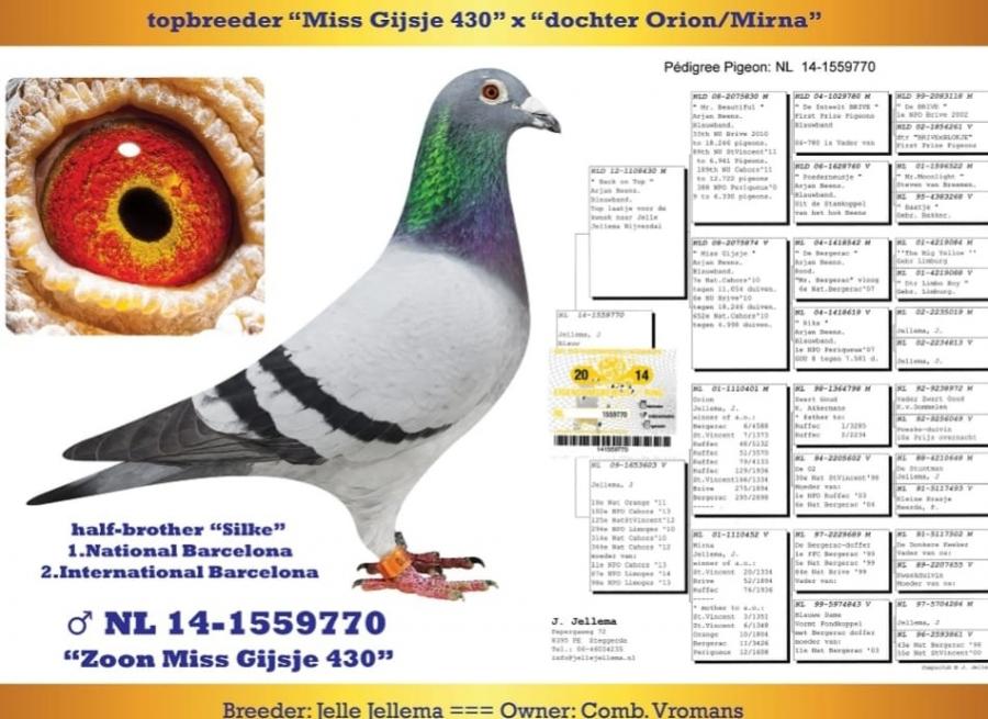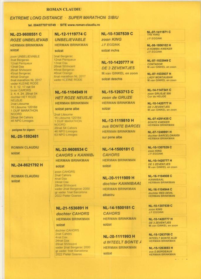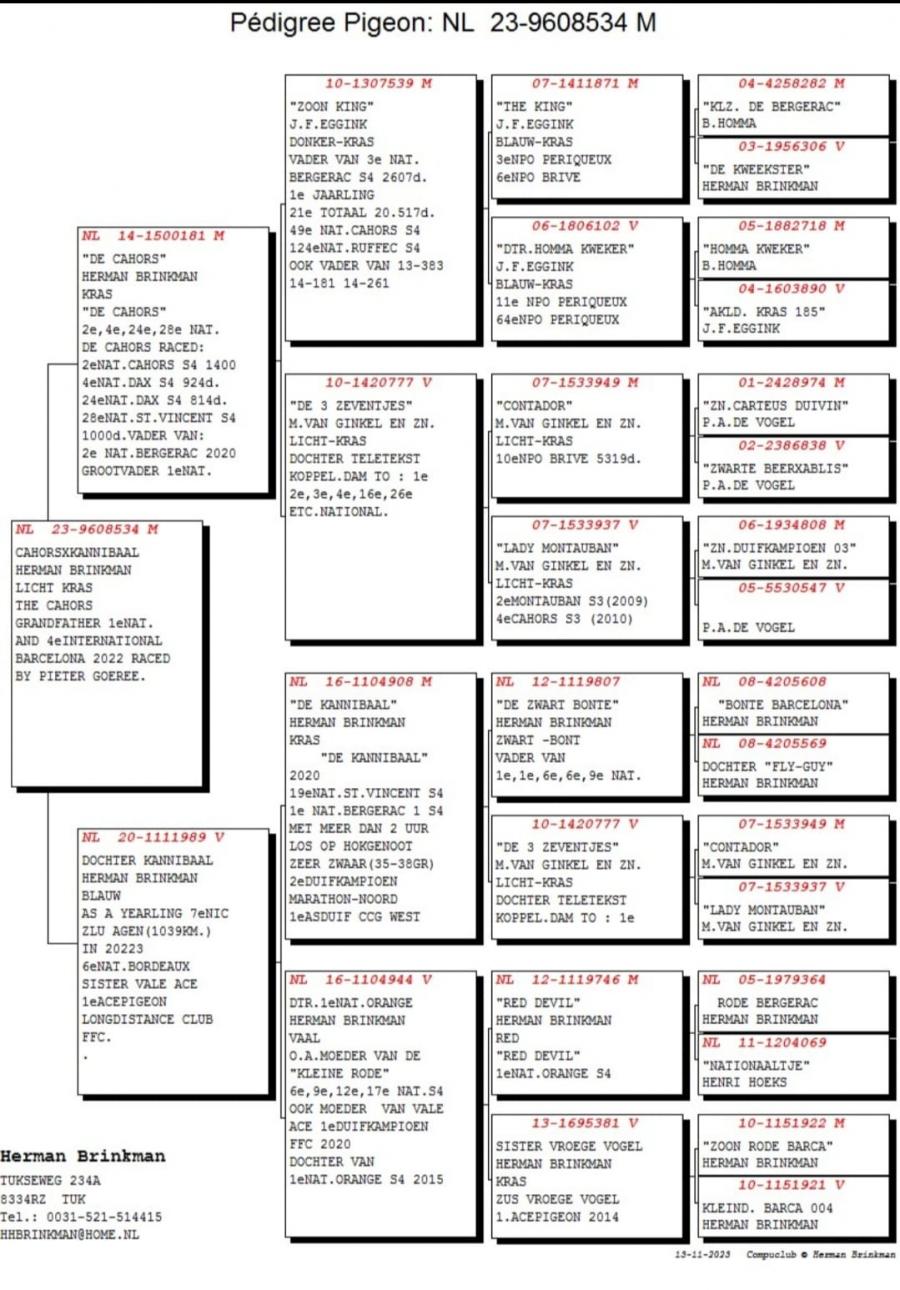 MAMA - 100% Herman BRINKMAN Consangvina CAHORS, gr.pa 1 national BARCELONA 2022 oferta curenta: Pigeons07 |