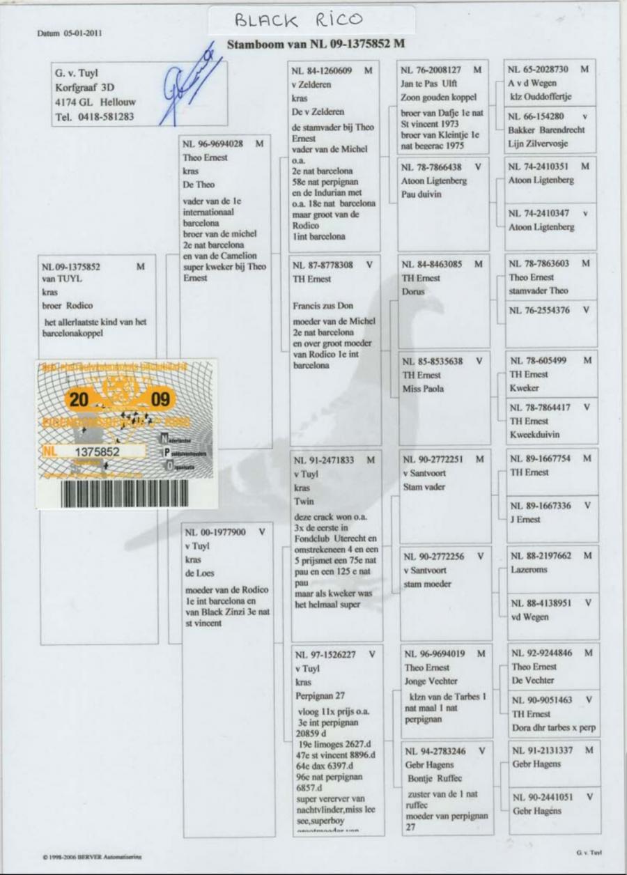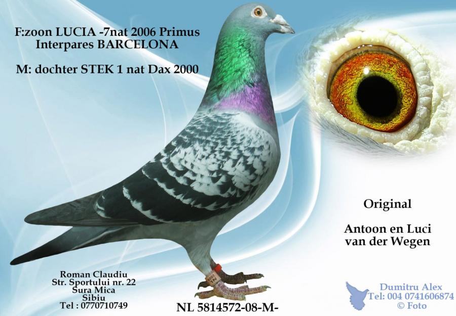TATA 100% WEGEN din NL 07-3738956 original Antoon en Luci van der WEGEN (fiu BARCELONA223 loc 1 PRIMUS INTERPARES 2001-2005)SUPERBREEDER