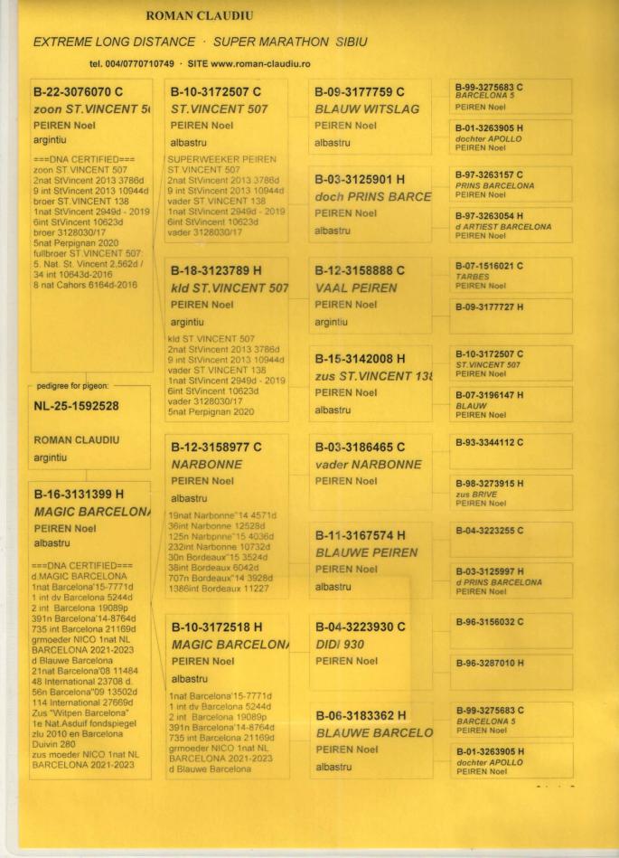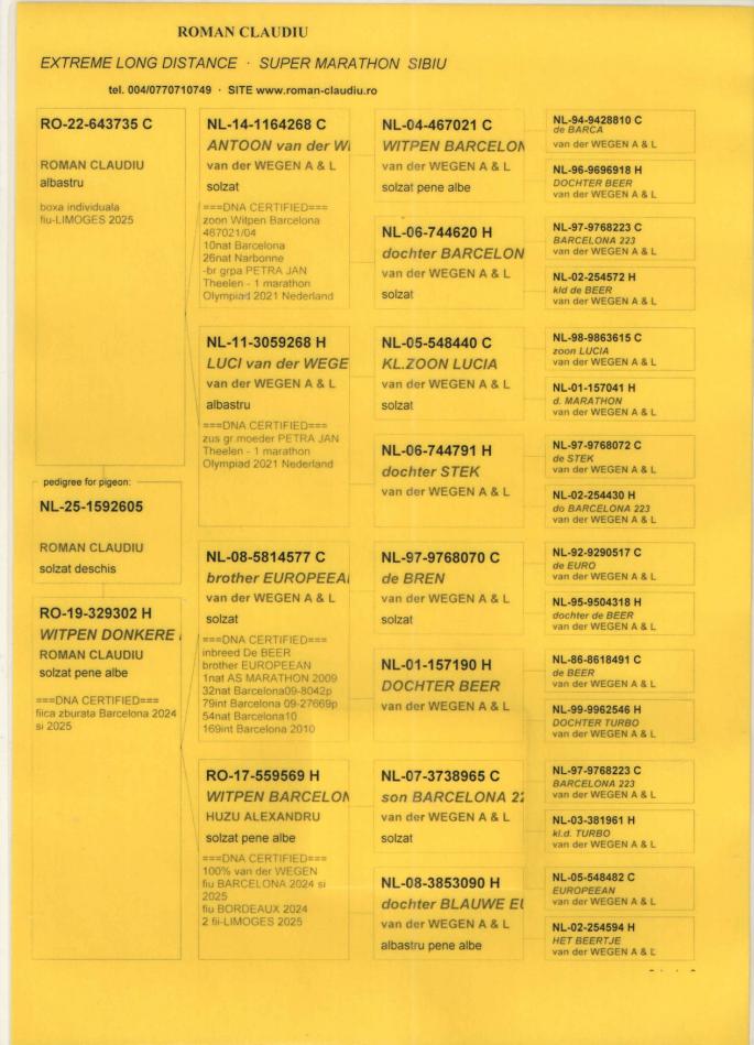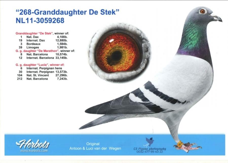 TATA 100% .WEGEN din NL 14-1164268 original Antoon en Luci van der WEGEN (fiu WITPEN BARCELONA) SUPERBREEDER-fiica și nepoti zburați Barcelona 2024,2025, NARBONNE 2025, BORDEAUX 2023,2024, LIMOGES 2025.... x NL 11-3059268 original Antoon en Luci van der WEGEN