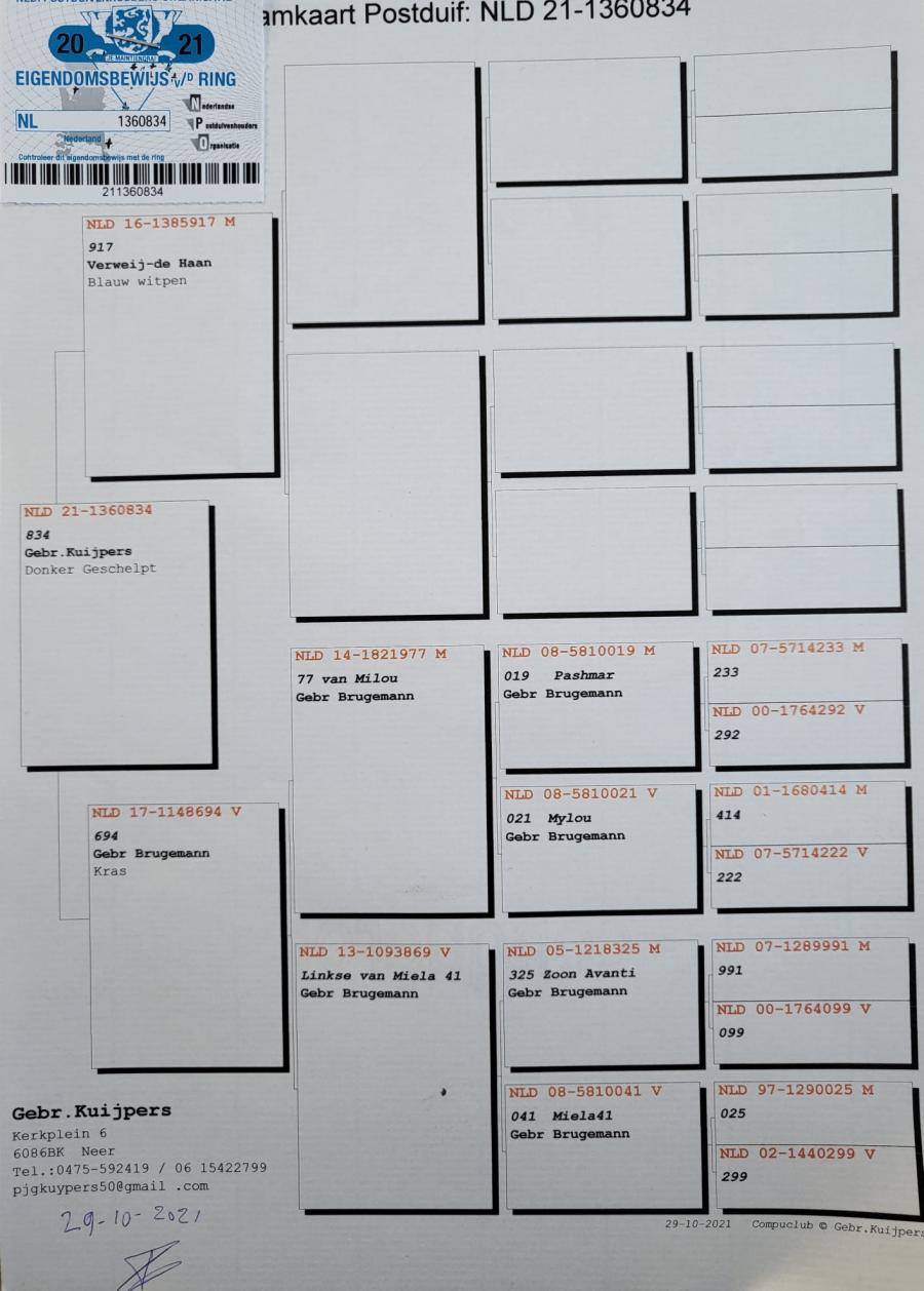 MAMA -100% Jan THEELEN din NL 21-1361086 (zoon nestbroer PETRA JAN) x NL 21-1361095(dochter PETRA JAN) oferta curenta: Talpa iute |