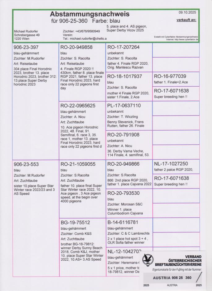 reprodus de Cirlan Liviu vandut de OLR Derby Vicov