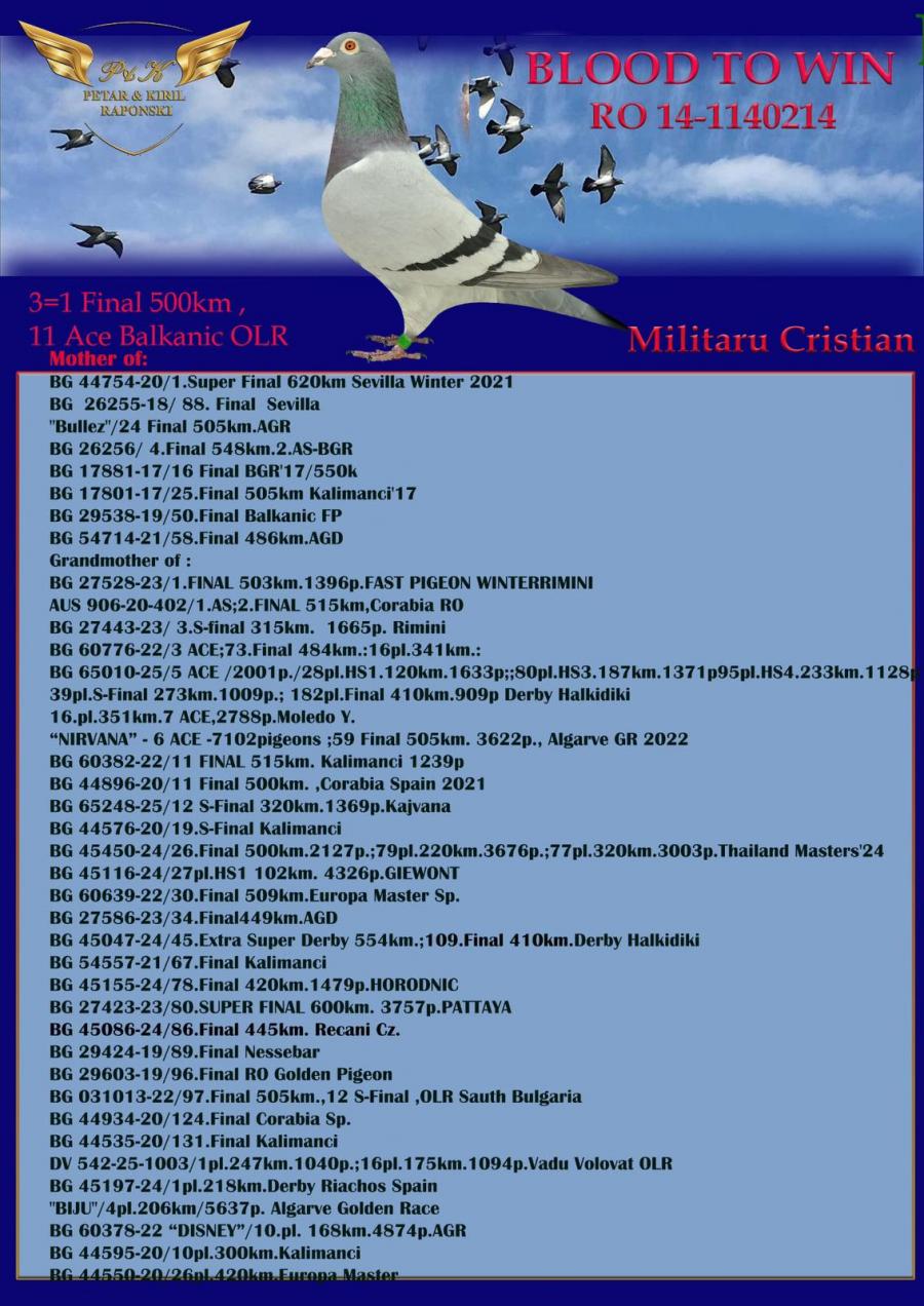 reprodus de Golden Wing & Abasev V vandut de OLR Bucovina Cajvana finalizat la 21:30:00 |
