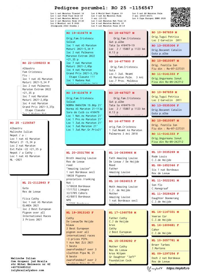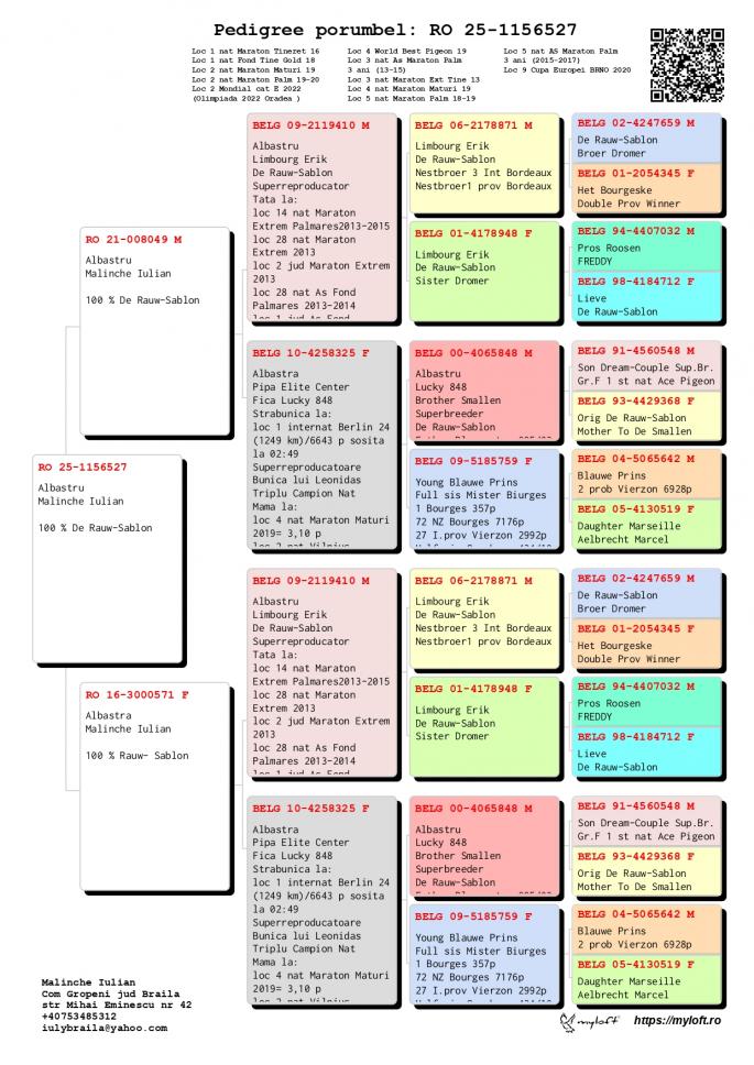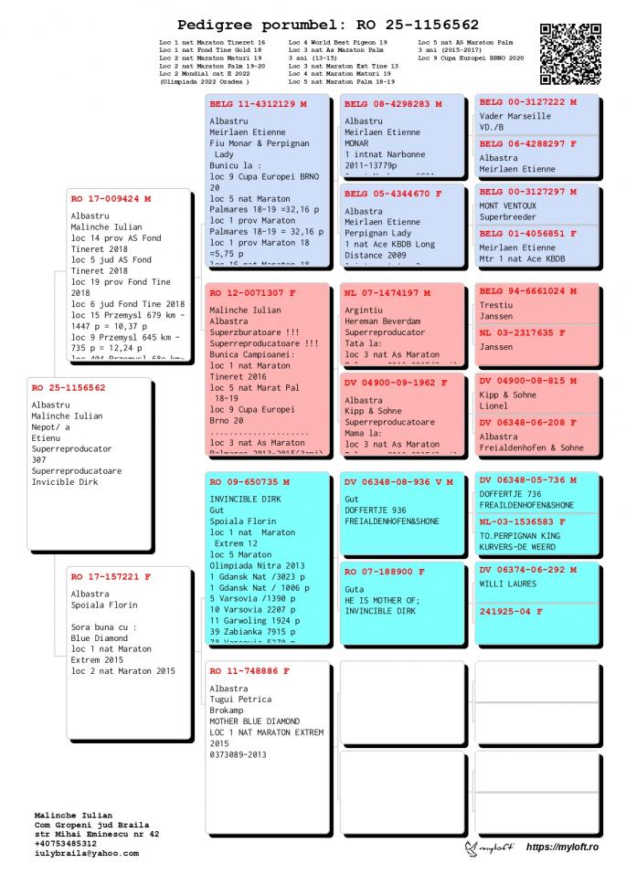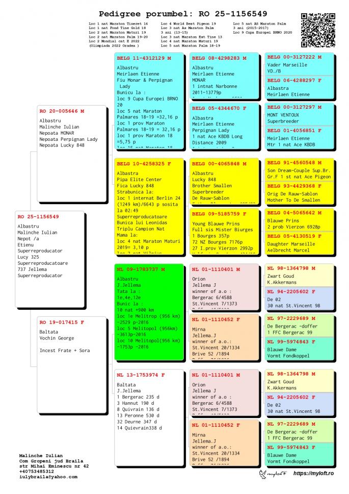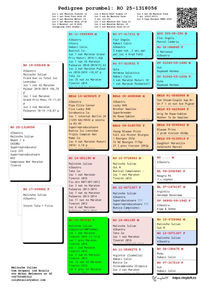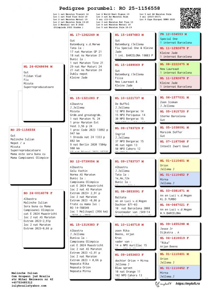 Nepoata Micuta, bunica si strabunica la: 1 Nat. Maraton Tineret 24 1 Prov. Maraton Extrem Mat. 24 4 Nat. Berlin Palm. 3 ani 20 13 Nat. Maraton GP YL 22 28 Nat. As Maraton Mat. 22 Descendentii zburati in diferite crescatorii! TOP