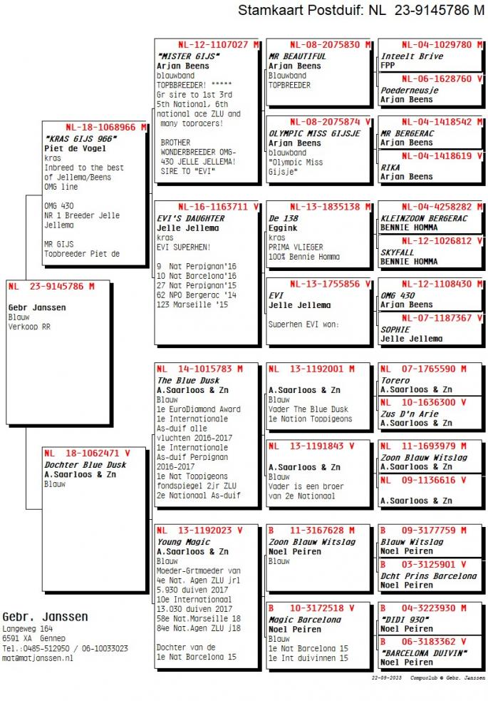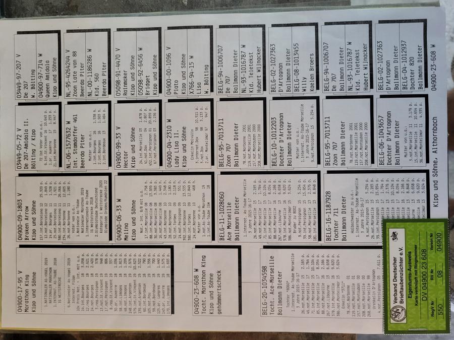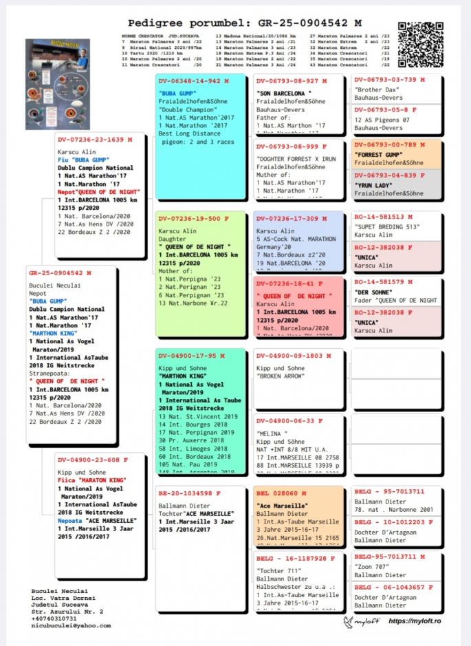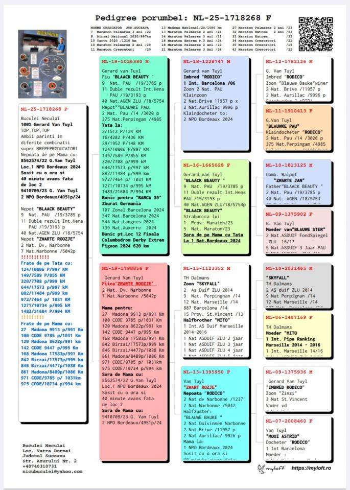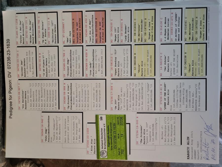 Nepoata SPEEDY BORDEAUX 1 Nat. Maraton NL `21 1 Maraton FCI Olanda `21 2 AS Maraton Olanda `21 5 World Best Pigeon `21 2 Beste Maraton Pigeon NL Over 2 races Pipa 2 Beste Maraton Pigeon NL 3 races Pipa