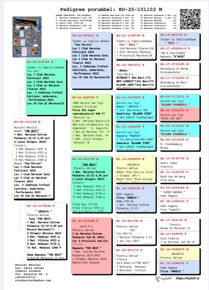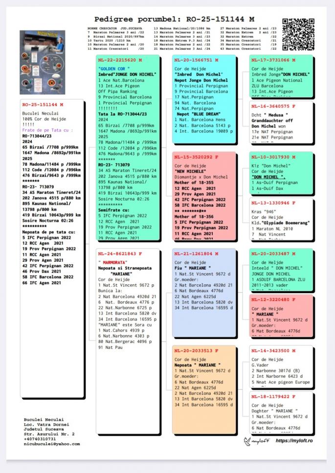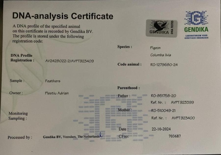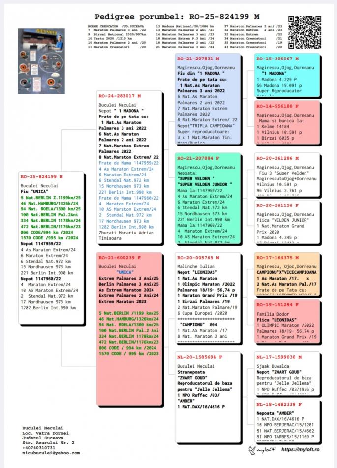 100% Cor de Heijde Sora de pe tata cu RO 23-713044 65 Birzai 7708 p. 999 km `24 1647 Madona 8692 p. 991 km `24 78 Madona 11484 p. 999 km `25 112 Code 12084 p. 996 km 476 Madona 9643 p. 999 km RO 23-703079 34 AS Maraton Tineret `24 202 Janova 4515 p. 880 km