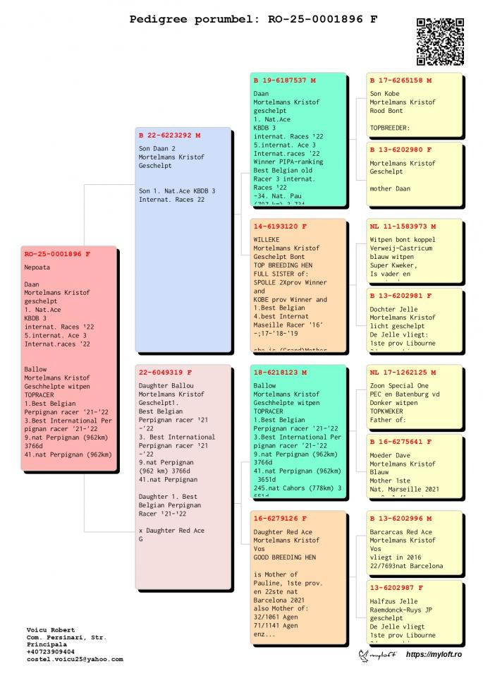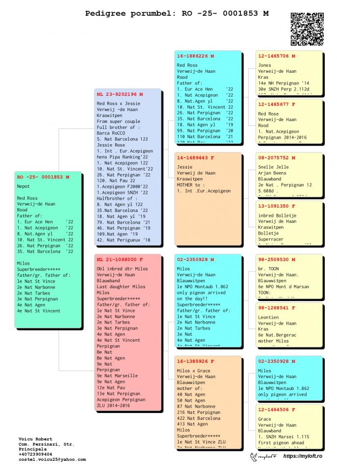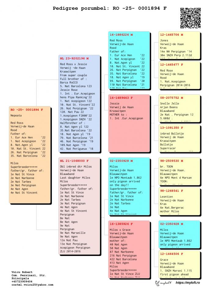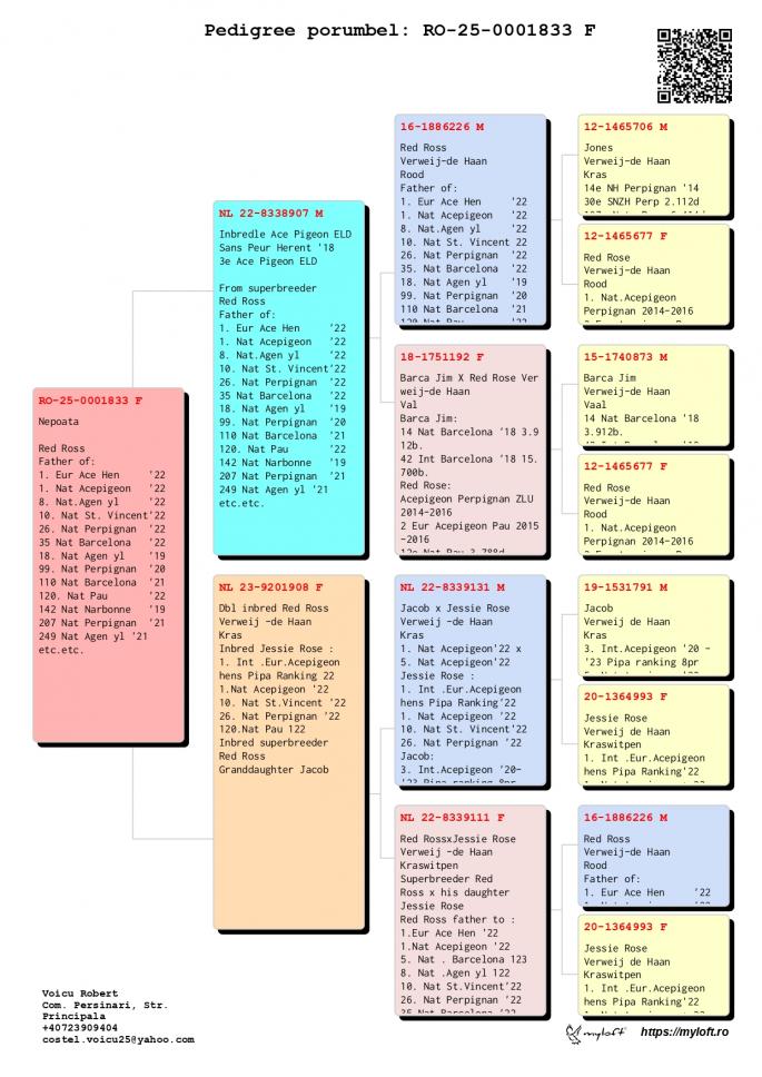 Nepoata si stranepoata RED ROSS - SUPER REPRODUCATOR ! Tata la : 1 Europa Ace Hen `22 1 Nat. Acepigeon `22 8 Nat. Agen YL `22 10 Nat. St. Vicent `22 26 Nat. Perpignan `22 35 Nat. Barcelona `22 18 Nat. Agen YL `19