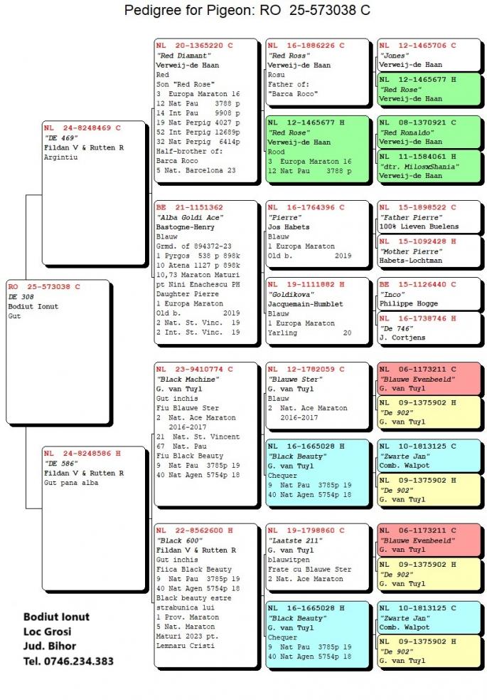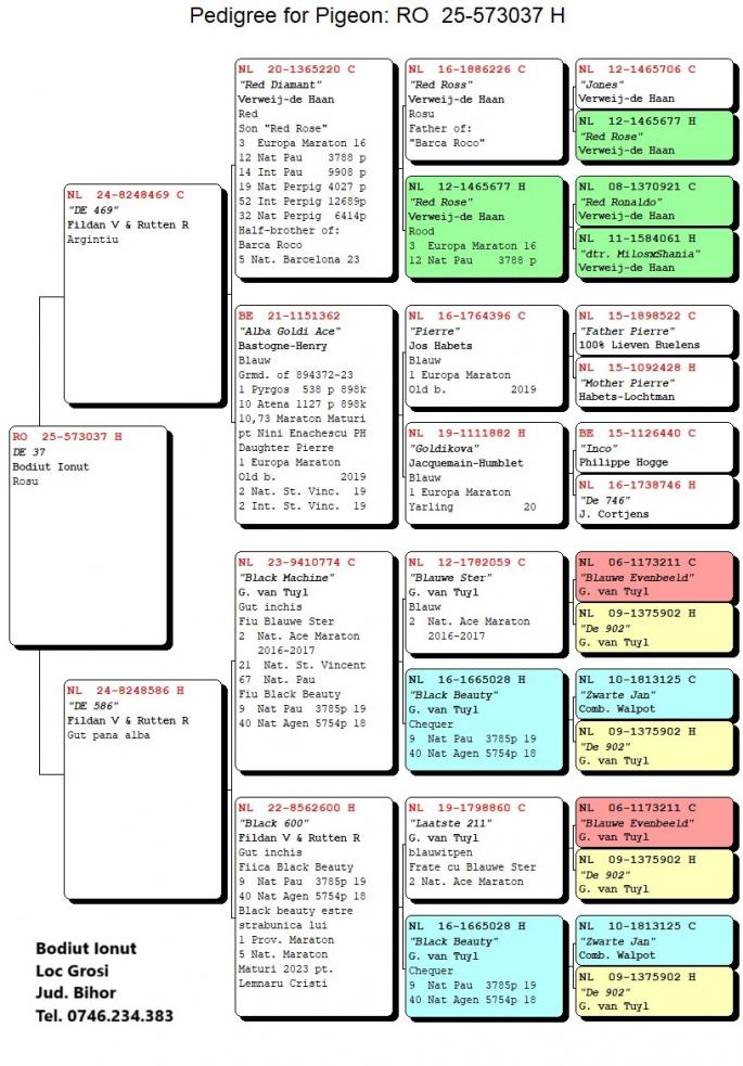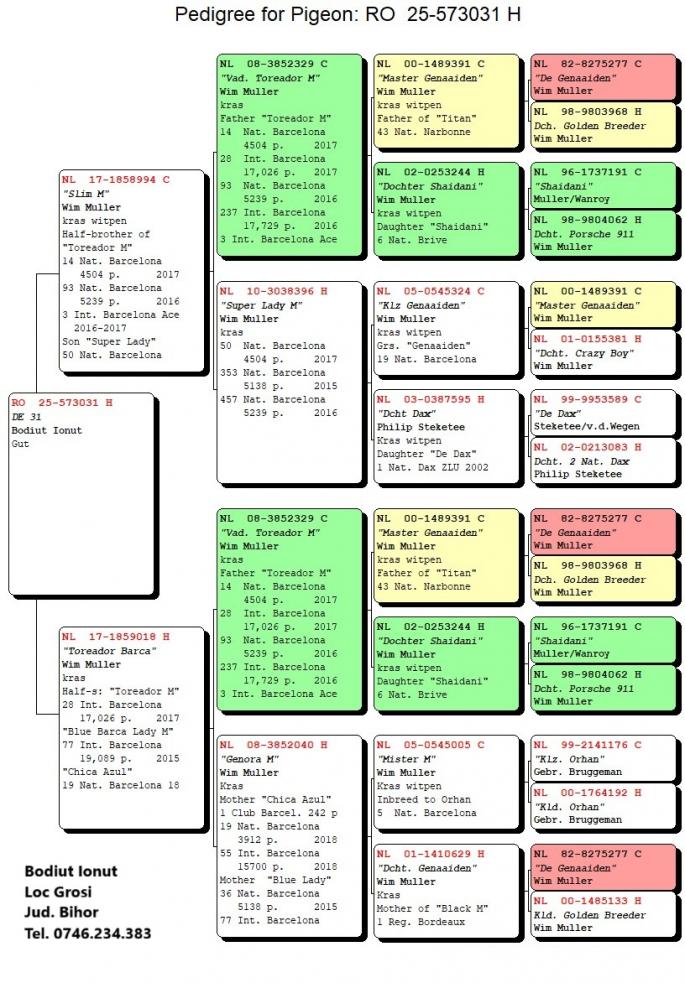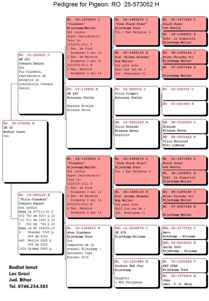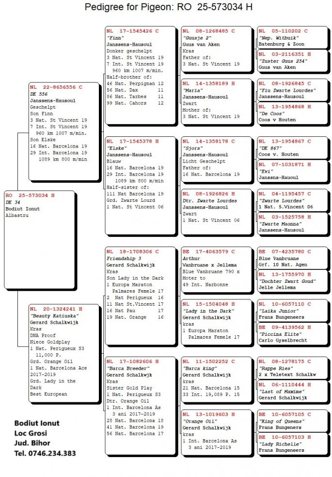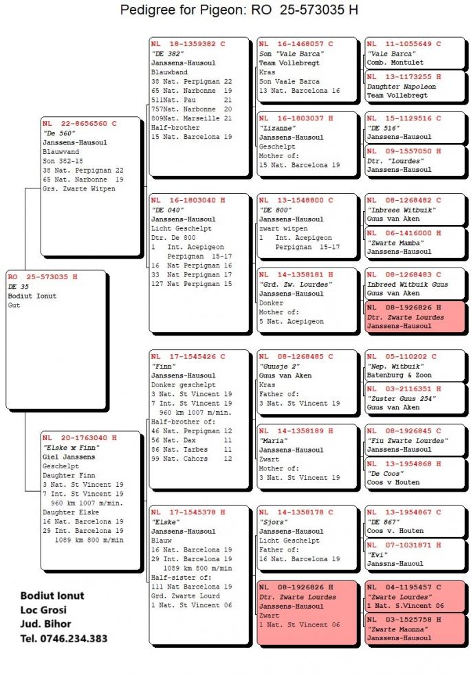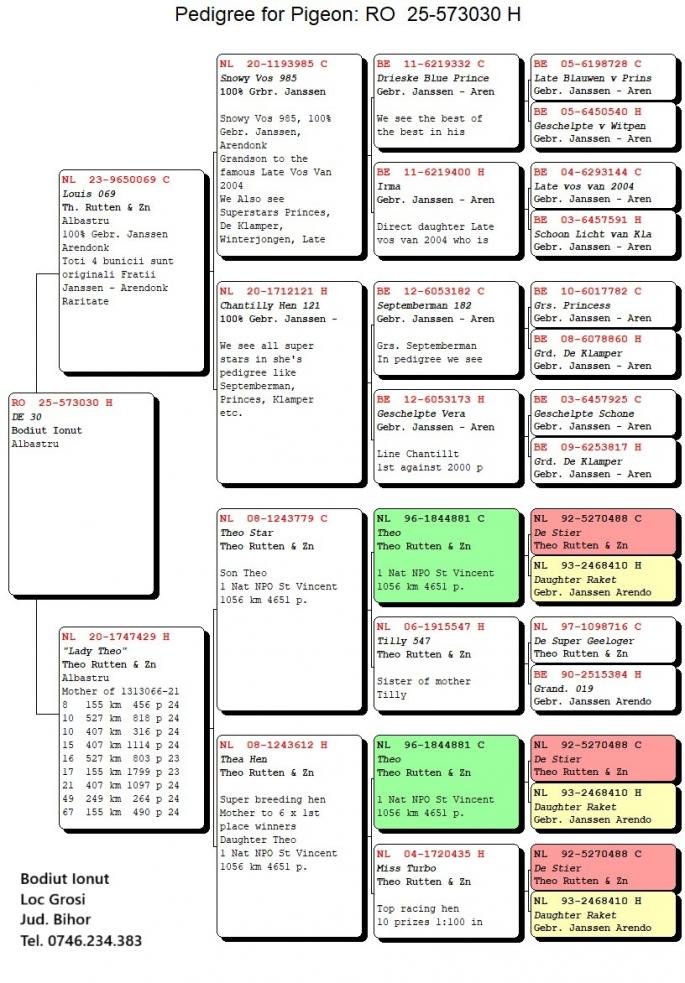 Mama este o buna reproducatoare, dublu nepoata Theo 1 Nat. NPO St. Vincent 1056 km 4651 p. Toti cei 4 bunici ai tatalui sunt originali Gebr. Janssen - Arendonk 100% Gebr. Janssen - Arendonk Oportunitate rara! oferta curenta: - |