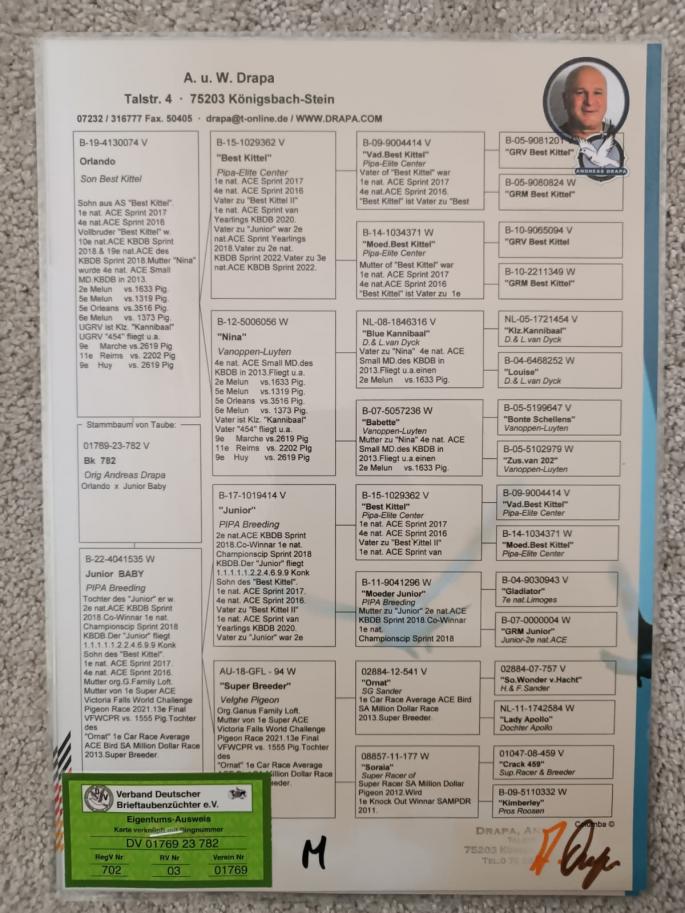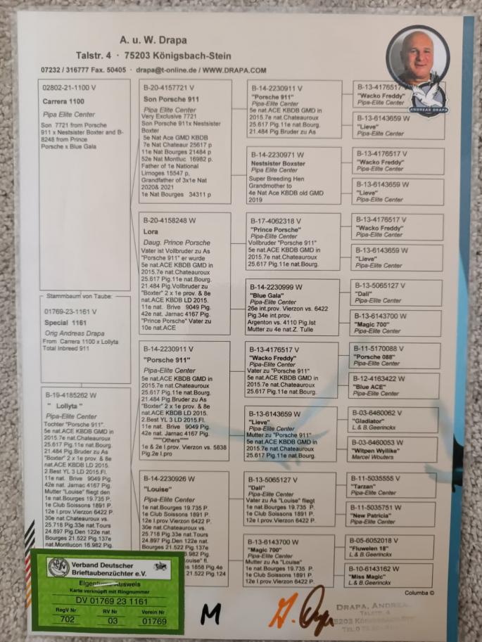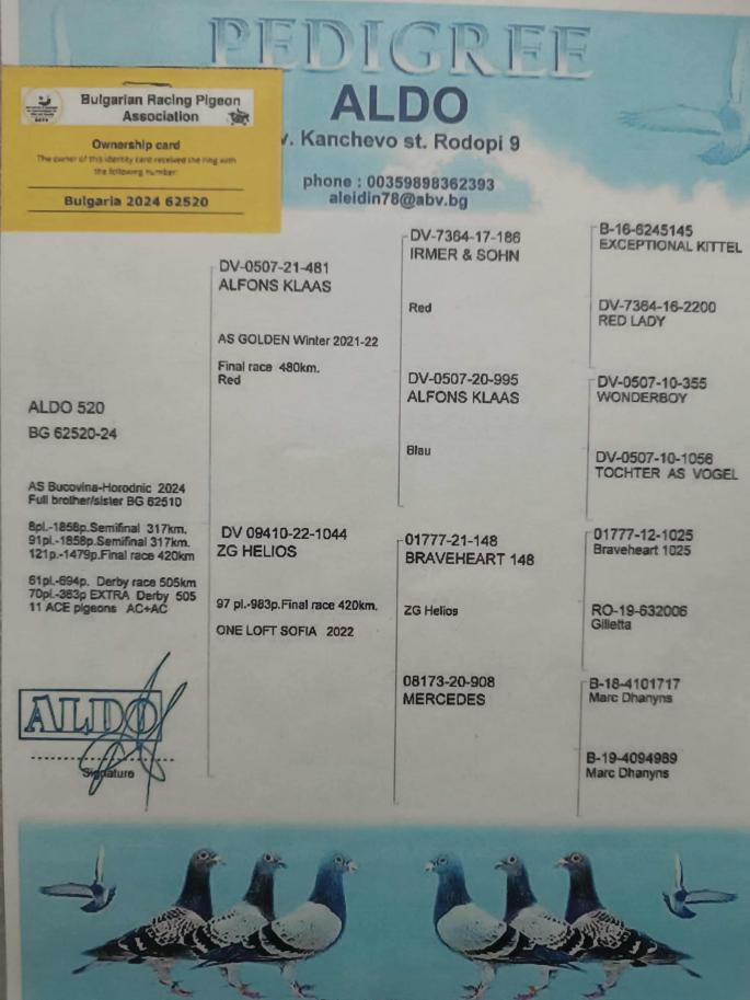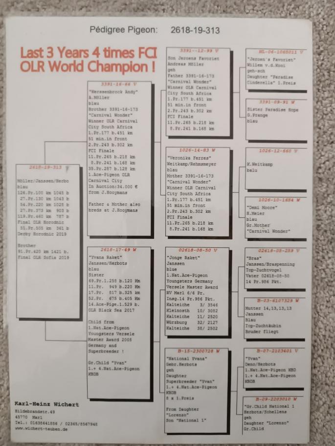 Frate bun cu BG 6251 8 / 1858 p. Semifinal 317 km 91 / 1858 p. Semifinal 317 km 121 / 1479 p. Final Race 420 km 61 / 694 p. Derby Race 505 km 70 / 363 Extra Derby 505 km 11 ACe pigeon AC+AC castigator: Maik |