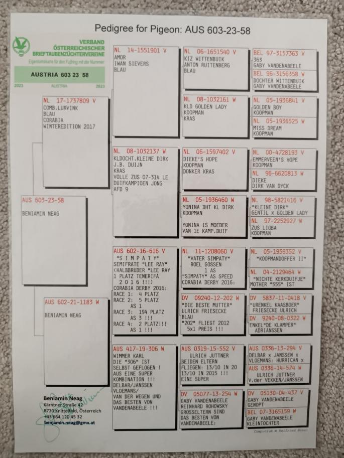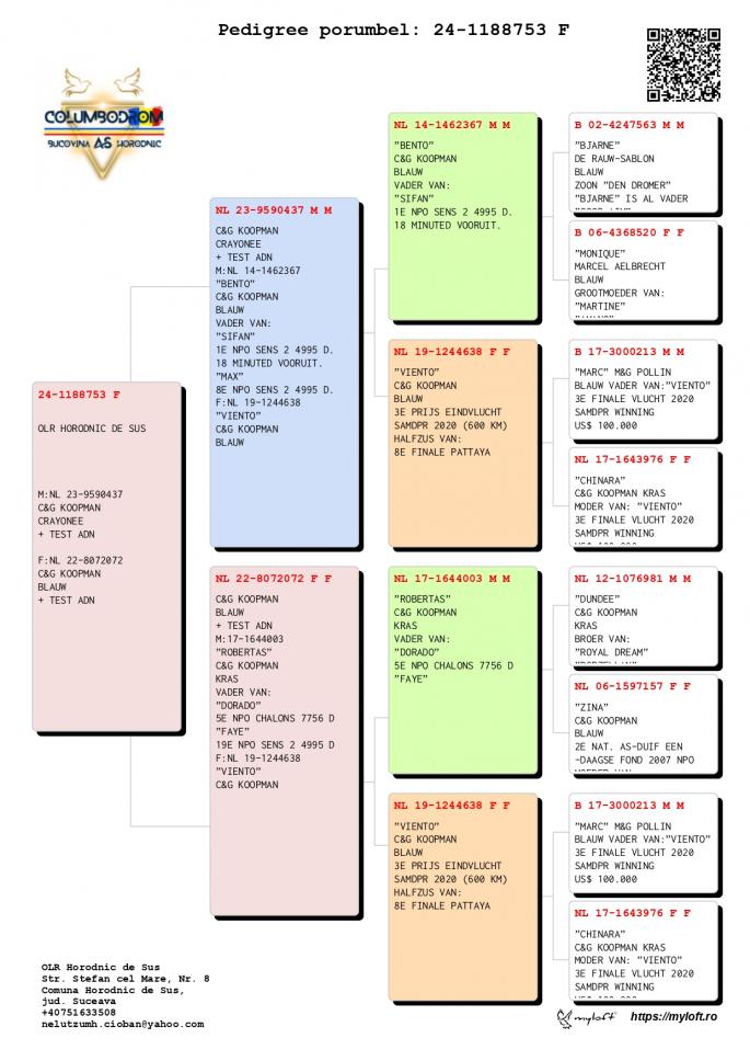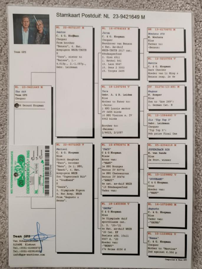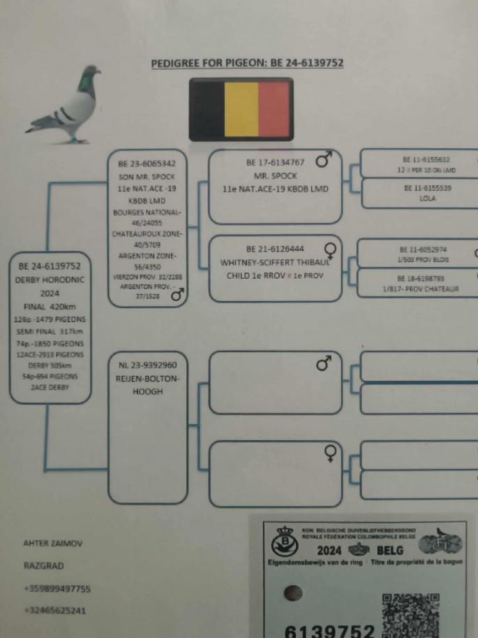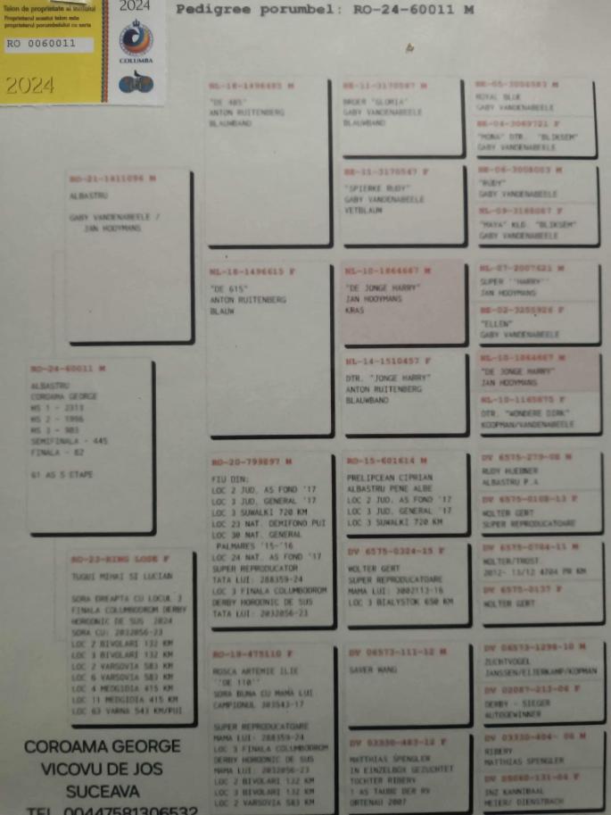 Nepot Gaura 4 Nat. As Pigeon Cat F 1 NPO Chateaudoun 2580 p. 680 km 100% C & G Koopman castigator: Ionut Bln |