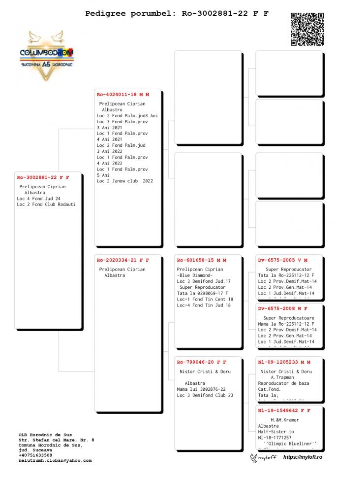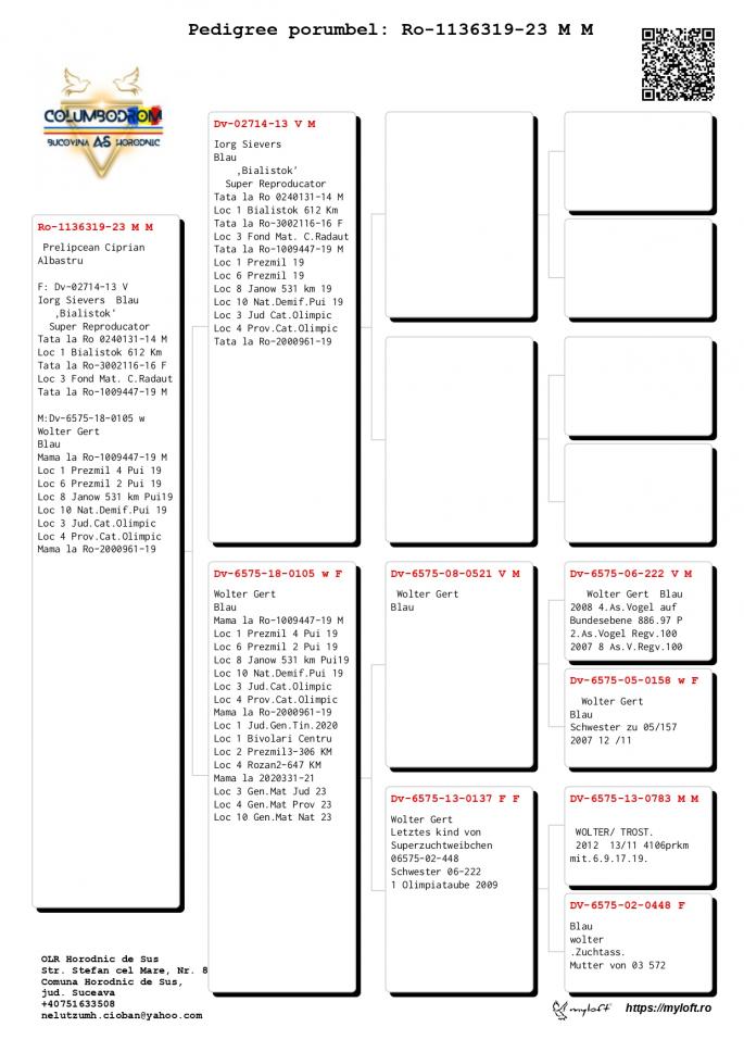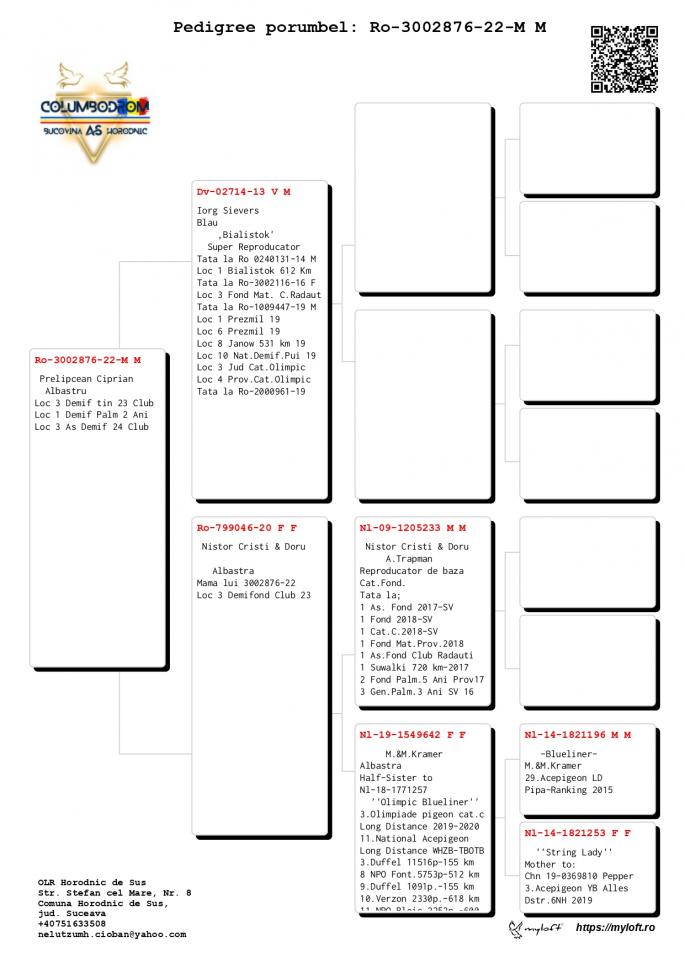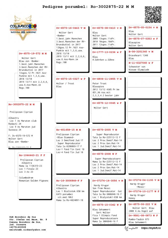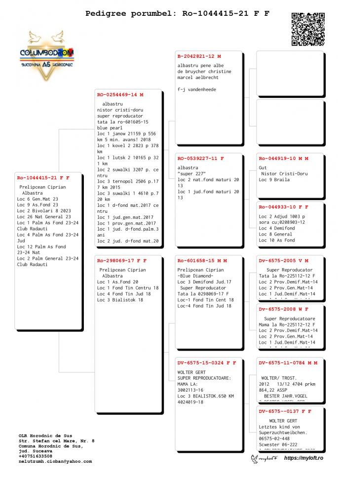 Nepot Gaura 4 Nat. As Pigeon Cat F 1 NPO Chateaudoun 2580 p. 680 km 100% C & G Koopman castigator: Ionut Bln |