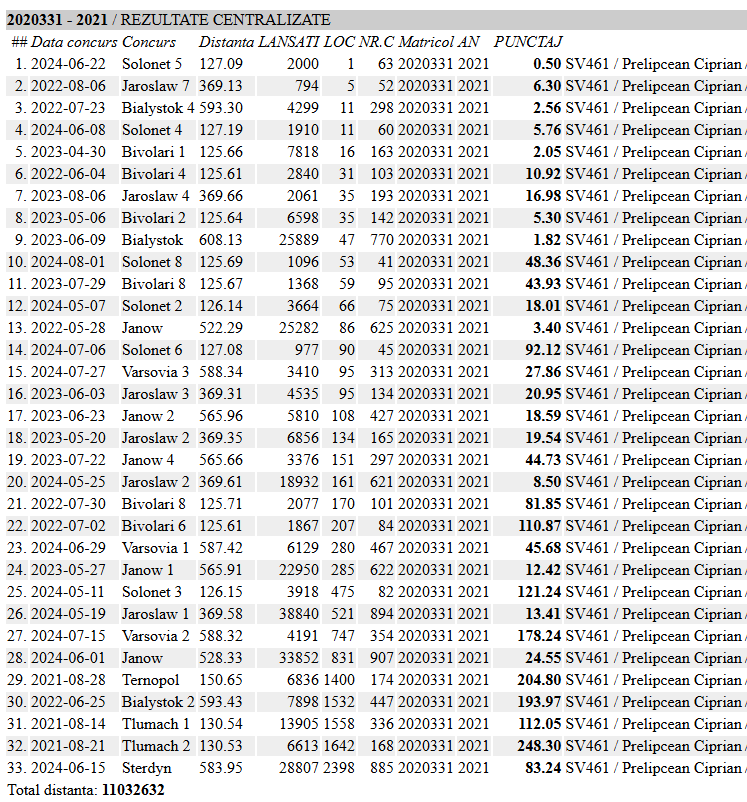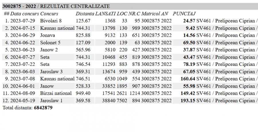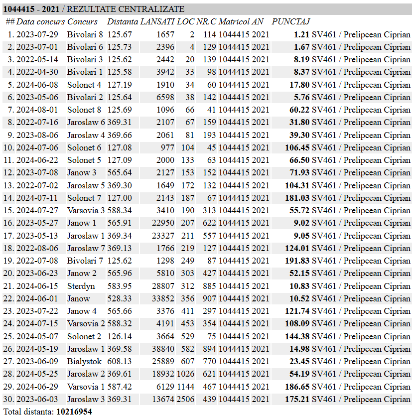 3 Jud. General Maturi 2023 4 Nat. General Palmares 24 10 Nat. General Maturi 2023 33 clasari, peste 10,000 km clasati castigator: OaneaL |